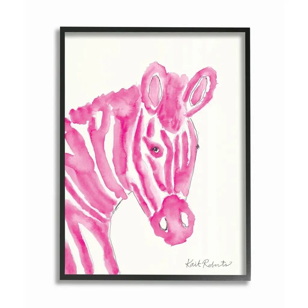 Stupell Kid's Watercolor Zebra Portrait Pink Stripe Zoo Animal Framed Wall Art - 16 X 20 - Black
