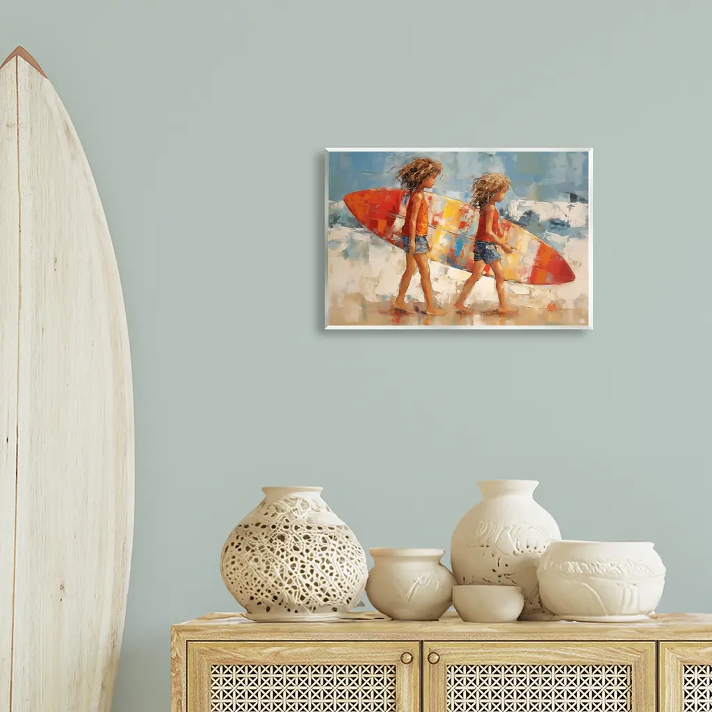 Our wall plaques start as high-quality lithograph prints mounted on durable 0.5-inch thick MDF wood. Each piece is hand finished and comes with a fresh layer of white foil on the sides to give it a crisp, clean look. Plaques arrive ready to hang without installation and come with removable plastic corners to keep them from damage in transit. Stupell Wall Art is made in the USA.Features: Dimensions: 15 x 0.5 x 10 InchesWall Plaque Product Sizes Include 15"x10" and 19"x13". All wall plaque products have a 0.5" Depth. Wall Art is Ready to Hang with Hardware Free Hanging. No installation required. For Easy Set Up Lean or Layer Artwork on Shelf or Against Wall.All of our wall plaques start off as high quality lithograph prints that are then mounted on durable 0.5 inch thick MDF wood. Each piece is hand finished and comes with a fresh layer of foil on the sides to give it a crisp clean look. Made In USA.Artwork Relates To: Nature, Sea, Water, Sea Waves, Sport, Surfing, Child, Surfboard, Beach, SummerDesign by Petal Prints Design