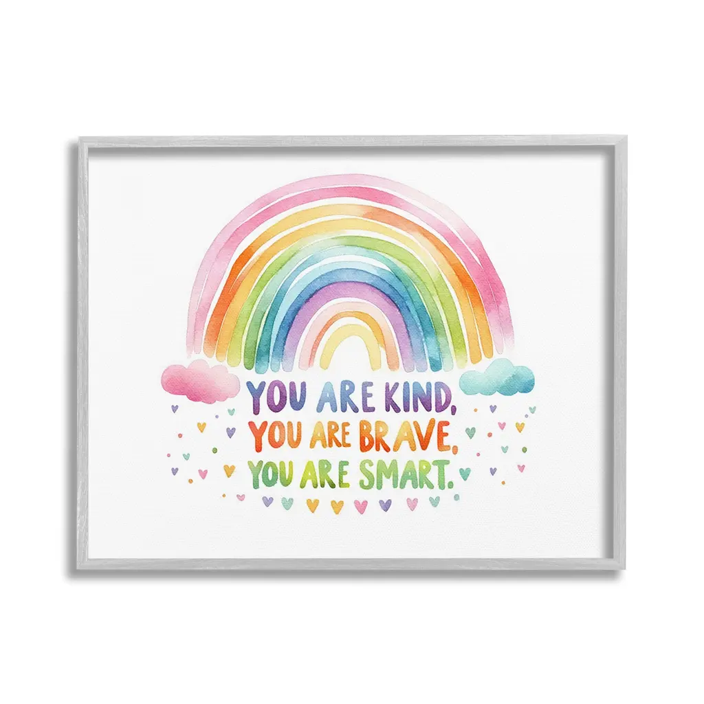 Elevate your home or office to the next level with Stupell Framed Floating Canvas Wall Art. Our premium hand-stretched canvas is mounted securely into a sturdy lightweight frame. The museum-style gap between the wrapped canvas and the box frame gives the illusion of floating artwork. Stupell Wall Art is made in the USA.Features: Dimensions: 21 x 1.7 x 17 Frame, 20 x 1.5 x 16 Canvas ArtFloating Frame Canvas Products are available in sizes 21"x17" and 31"x25". All Floating Frame Canvas Products have a 1.7" Depth.Wall Art is Ready to Hang with Hardware Free Hanging. No Installation required. For Easy Set Up Lean or Layer Artwork on Shelf or Against Wall. Artwork is Permently Fixed into the Frame.Our elevated 1.7" Thick Floating Frame is the perfect complement to our canvas style Wall Art. We use only the highest quality inks in house with industry leading printing solutions. Canvas is hand stretched over a durable wood foundation and then mounted securly into a Modern Box Frame. Made in the USA.Artwork Relates To: Landscape, Nature, Cloud, Rainbow, Inspirational, Phrase, Heart, You Are Kind, You Are Brave, You Are SmartDesign by Amanda Greenwood