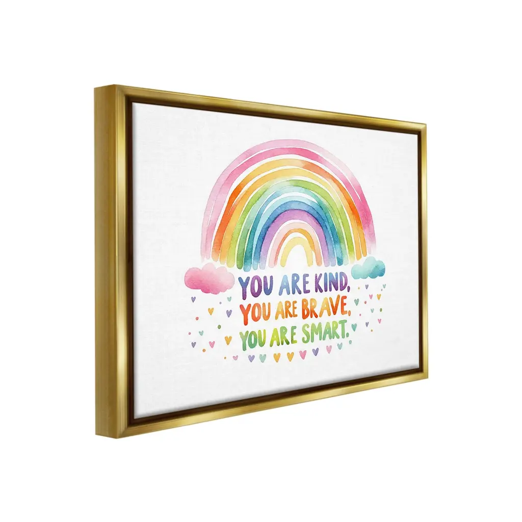 Stupell Kind Brave Smart Rainbow Framed Floater Canvas Wall Art Design By Amanda Greenwood - 21 X 17 - Gold
