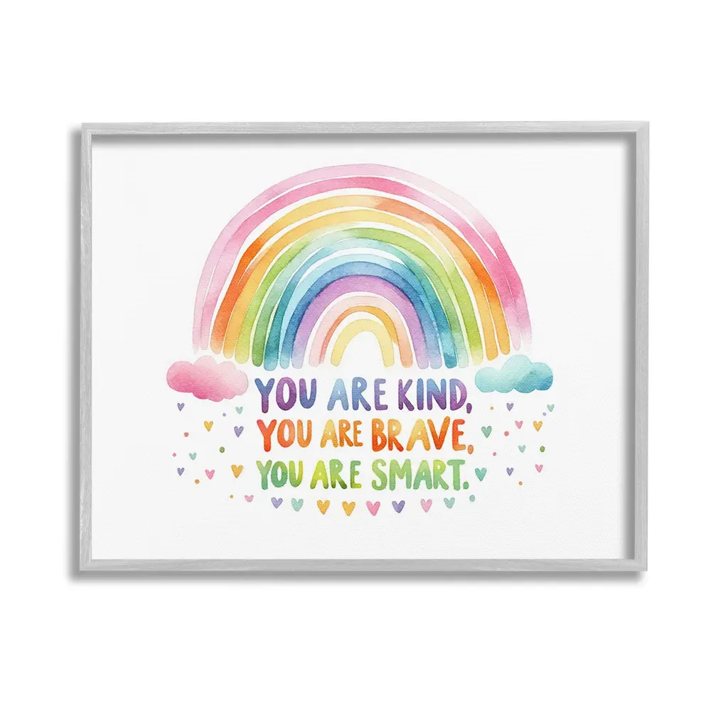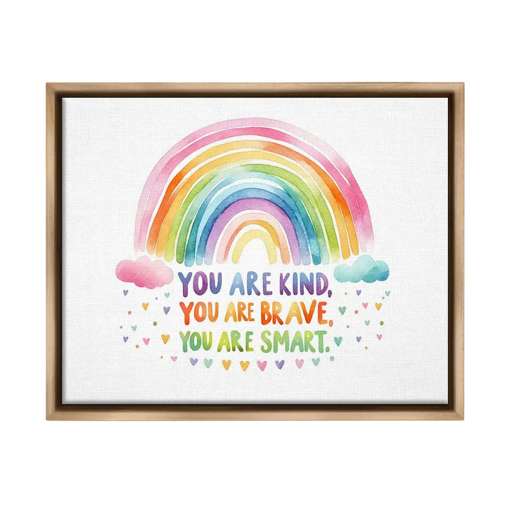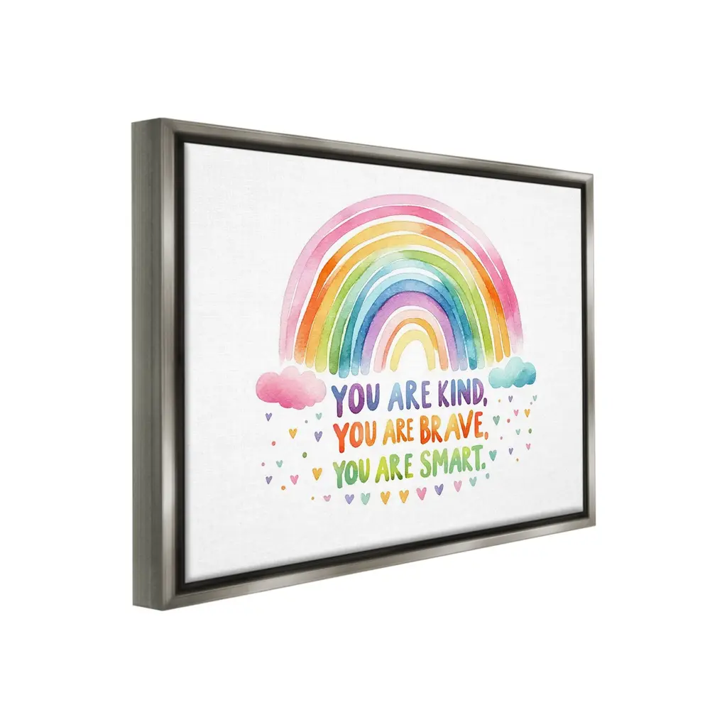 Elevate your home or office to the next level with Stupell Framed Floating Canvas Wall Art. Our premium hand-stretched canvas is mounted securely into a sturdy lightweight frame. The museum-style gap between the wrapped canvas and the box frame gives the illusion of floating artwork. Stupell Wall Art is made in the USA.Features: Dimensions: 21 x 1.7 x 17 Frame, 20 x 1.5 x 16 Canvas ArtFloating Frame Canvas Products are available in sizes 21"x17" and 31"x25". All Floating Frame Canvas Products have a 1.7" Depth.Wall Art is Ready to Hang with Hardware Free Hanging. No Installation required. For Easy Set Up Lean or Layer Artwork on Shelf or Against Wall. Artwork is Permently Fixed into the Frame.Our elevated 1.7" Thick Floating Frame is the perfect complement to our canvas style Wall Art. We use only the highest quality inks in house with industry leading printing solutions. Canvas is hand stretched over a durable wood foundation and then mounted securly into a Modern Box Frame. Made in the USA.Artwork Relates To: Landscape, Nature, Cloud, Rainbow, Inspirational, Phrase, Heart, You Are Kind, You Are Brave, You Are SmartDesign by Amanda Greenwood