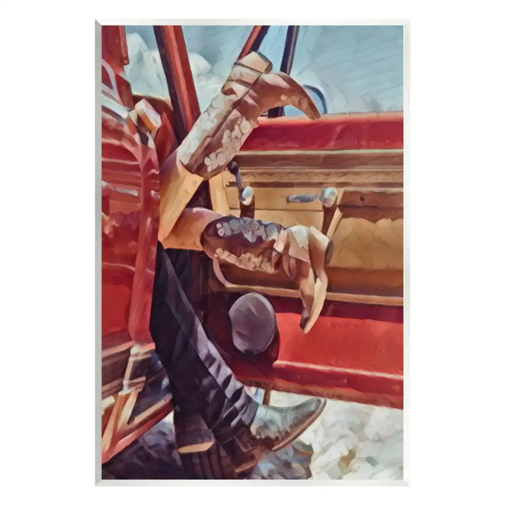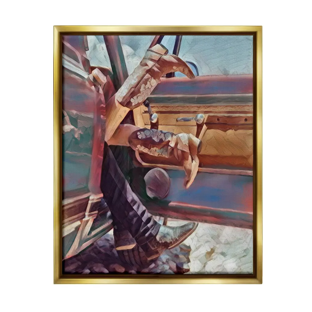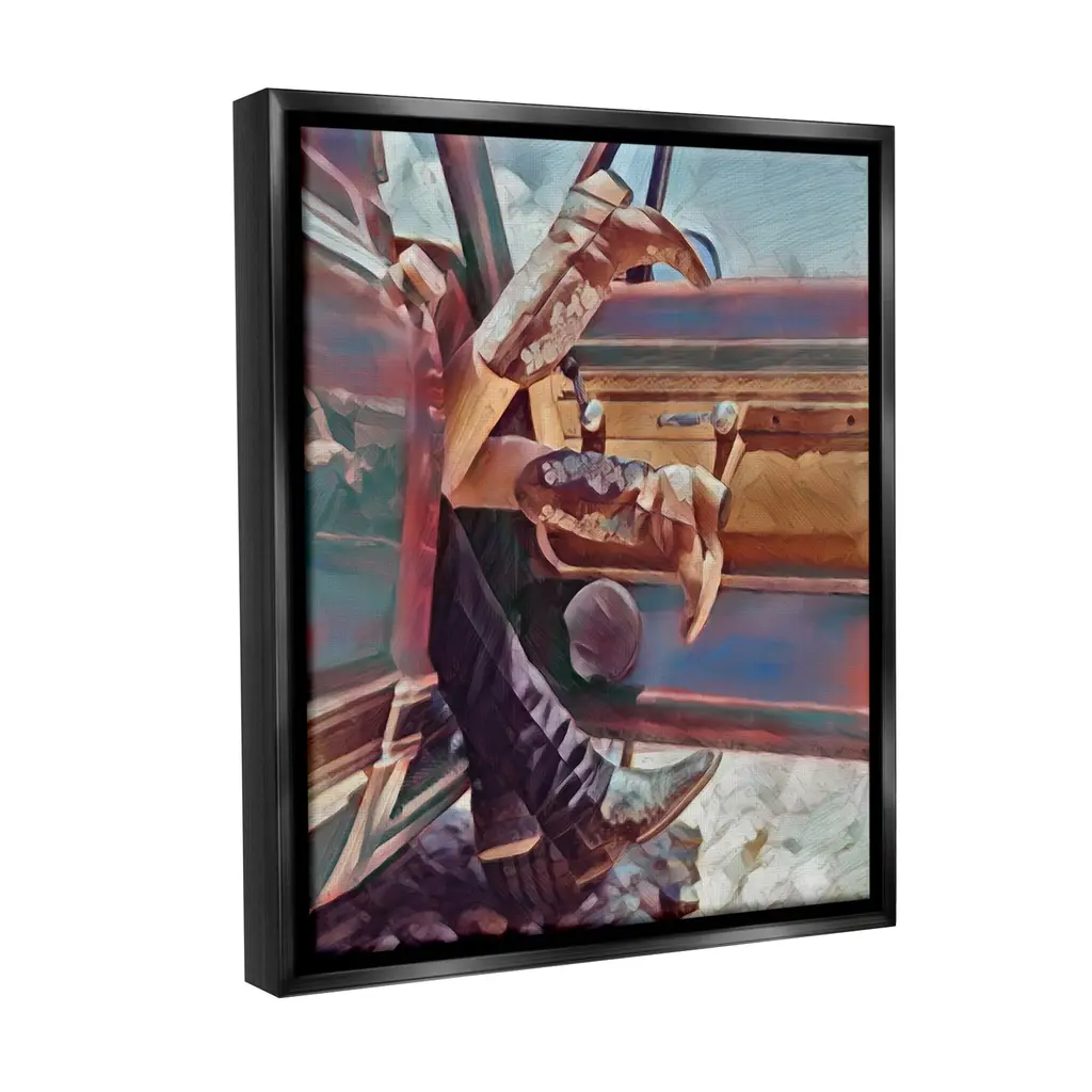 Elevate your home or office to the next level with Stupell Framed Floating Canvas Wall Art. Our premium hand-stretched canvas is mounted securely into a sturdy lightweight frame. The museum-style gap between the wrapped canvas and the box frame gives the illusion of floating artwork. Stupell Wall Art is made in the USA.Features: Dimensions: 17 x 1.7 x 21 Frame, 16 x 1.5 x 20 Canvas ArtFloating Frame Canvas Products are available in sizes 17"x21" and 25"x31". All Floating Frame Canvas Products have a 1.7" Depth.Wall Art is Ready to Hang with Hardware Free Hanging. No Installation required. For Easy Set Up Lean or Layer Artwork on Shelf or Against Wall. Artwork is Permently Fixed into the Frame.Our elevated 1.7" Thick Floating Frame is the perfect complement to our canvas style Wall Art. We use only the highest quality inks in house with industry leading printing solutions. Canvas is hand stretched over a durable wood foundation and then mounted securly into a Modern Box Frame. Made in the USA.Artwork Relates To: Equestrian, Rodeo, Country, Southwestern, Cowgirl, Cowboy, Couple, Romance, Car, TruckDesign by Jesse Keith