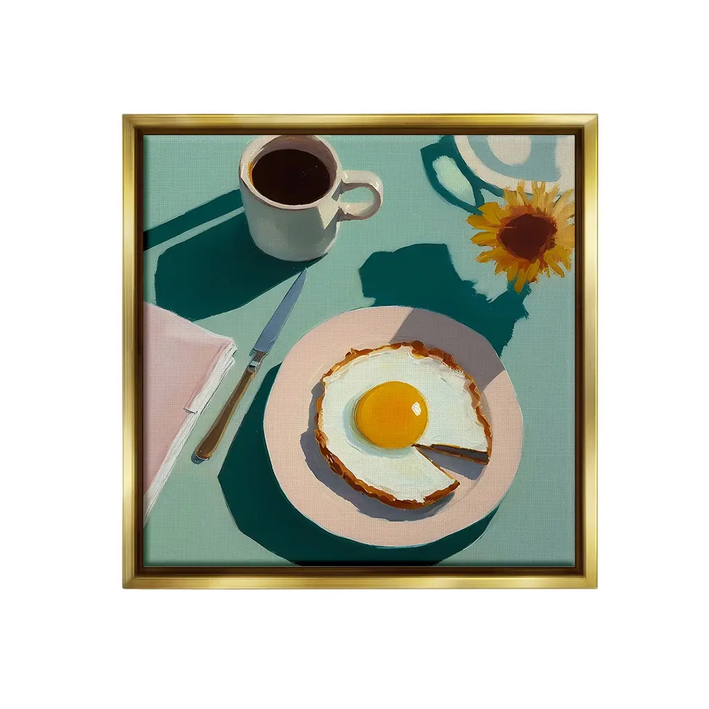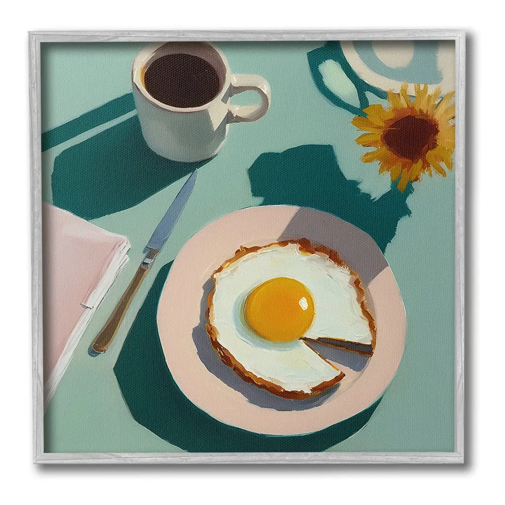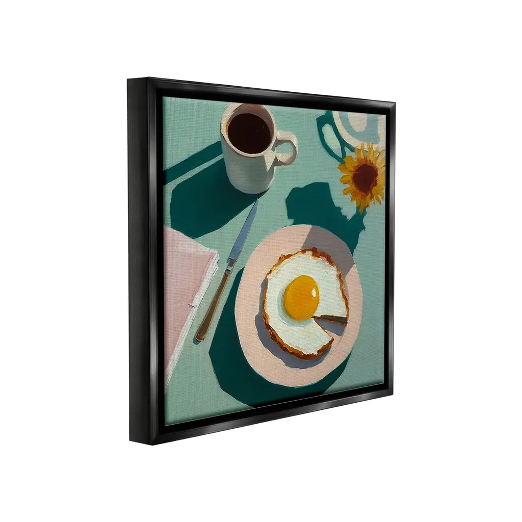Elevate your home or office to the next level with Stupell Framed Floating Canvas Wall Art. Our premium hand-stretched canvas is mounted securely into a sturdy lightweight frame. The museum-style gap between the wrapped canvas and the box frame gives the illusion of floating artwork. Stupell Wall Art is made in the USA.Features: Dimensions: 18 x 1.7 x 18 Frame, 17 x 1.5 x 17 Canvas ArtFloating Frame Canvas Products are available in sizes 18"x18" and 25"x25". All Floating Frame Canvas Products have a 1.7" Depth.Wall Art is Ready to Hang with Hardware Free Hanging. No Installation required. For Easy Set Up Lean or Layer Artwork on Shelf or Against Wall. Artwork is Permently Fixed into the Frame.Our elevated 1.7" Thick Floating Frame is the perfect complement to our canvas style Wall Art. We use only the highest quality inks in house with industry leading printing solutions. Canvas is hand stretched over a durable wood foundation and then mounted securly into a Modern Box Frame. Made in the USA.Artwork Relates To: Mug, Food, Egg, Fried Egg, Plate, Breakfast, Brunch, Coffee, Sunflower, Flower, Modern, KitchenDesign by Walker Noble
