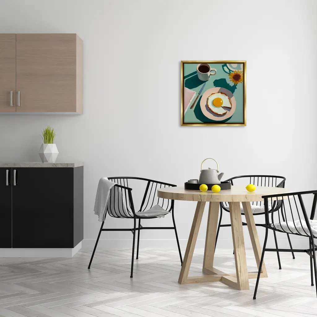 Elevate your home or office to the next level with Stupell Framed Floating Canvas Wall Art. Our premium hand-stretched canvas is mounted securely into a sturdy lightweight frame. The museum-style gap between the wrapped canvas and the box frame gives the illusion of floating artwork. Stupell Wall Art is made in the USA.Features: Dimensions: 18 x 1.7 x 18 Frame, 17 x 1.5 x 17 Canvas ArtFloating Frame Canvas Products are available in sizes 18"x18" and 25"x25". All Floating Frame Canvas Products have a 1.7" Depth.Wall Art is Ready to Hang with Hardware Free Hanging. No Installation required. For Easy Set Up Lean or Layer Artwork on Shelf or Against Wall. Artwork is Permently Fixed into the Frame.Our elevated 1.7" Thick Floating Frame is the perfect complement to our canvas style Wall Art. We use only the highest quality inks in house with industry leading printing solutions. Canvas is hand stretched over a durable wood foundation and then mounted securly into a Modern Box Frame. Made in the USA.Artwork Relates To: Mug, Food, Egg, Fried Egg, Plate, Breakfast, Brunch, Coffee, Sunflower, Flower, Modern, KitchenDesign by Walker Noble