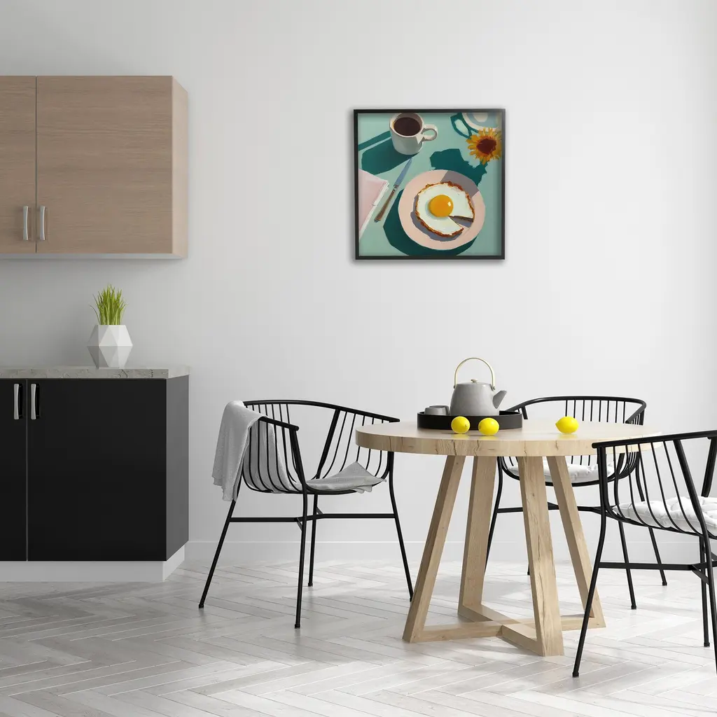 Add dimension to any room with our textured Framed Giclee Artwork. Our framed artwork is securely mounted into a 1.5-inch thick wood grain frame and ready to hang. Frames are available in three alluring styles: black, gray farmhouse and white. In addition, you should check out our oversized options if you want a statement piece. Stupell Wall Art is made in the USA.Features: Dimensions: 12 x 1.5 x 12 FramedFramed Giclee Product Sizes Include 12"x12", 17"x17", and 24"x24". Framed Giclee Products have a 1.5" Depth. Wall Art is Ready to Hang with Hardware Free Hanging. No installation required. For Easy Set Up Lean or Layer Artwork on Shelf or Against Wall.Our giclée prints are carefully mounted on a durable MDF backing, and then perfectly finished in a 1.5 inch thick woodgrain frame. Mounted frame colors include black, gray farmhouse and white. Made In USA.Artwork Relates To: Mug, Food, Egg, Fried Egg, Plate, Breakfast, Brunch, Coffee, Sunflower, Flower, Modern, KitchenDesign by Walker Noble