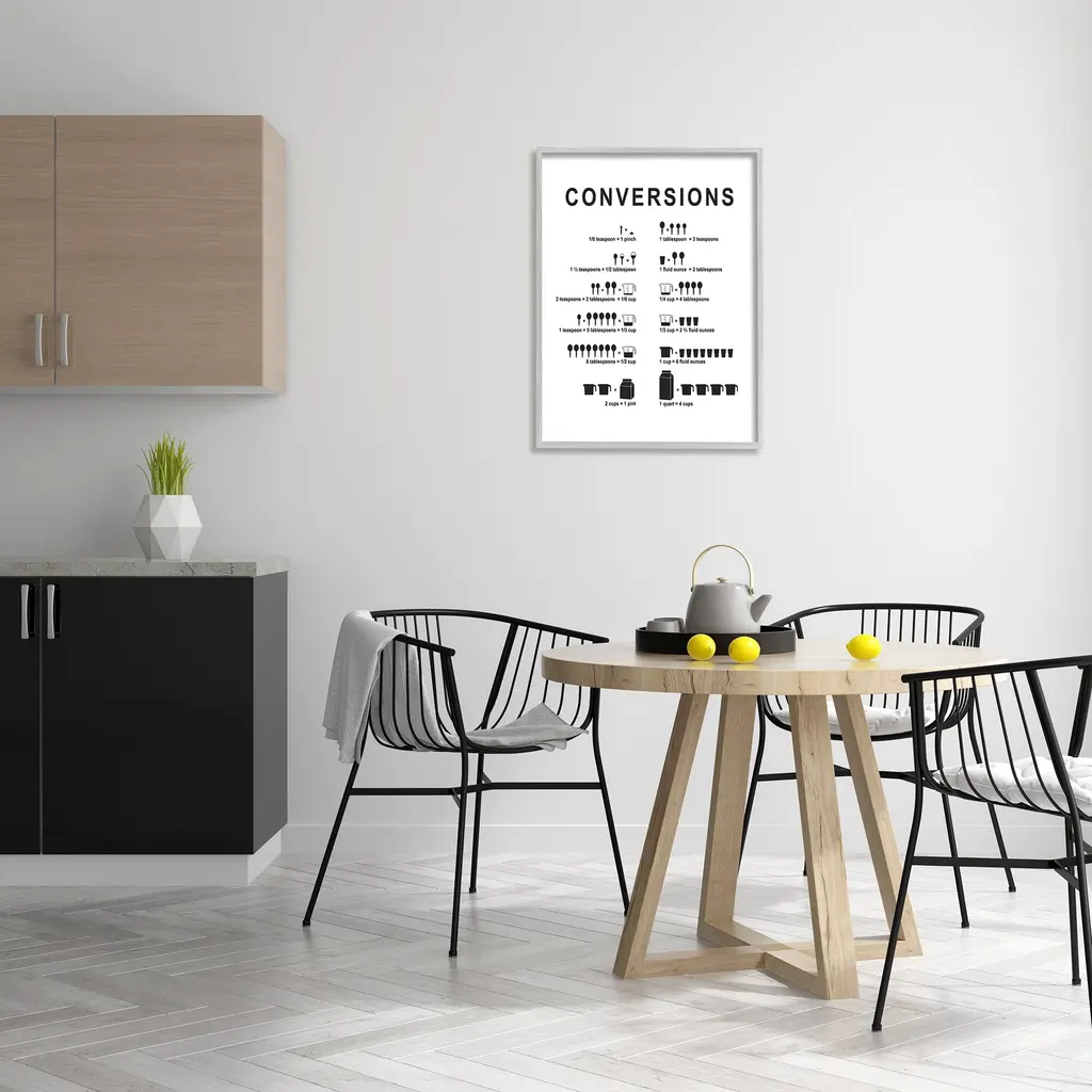 Stupell Kitchen Conversions Informative Measurements Chart Diagram Framed Wall Art, Design By Lettered And Lined - White - 24 X 30 - Grey