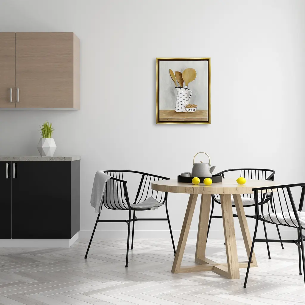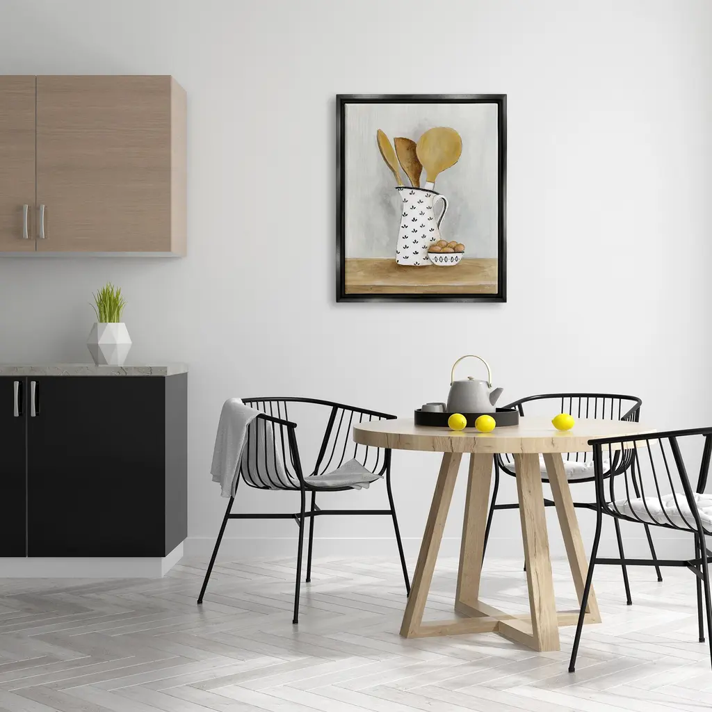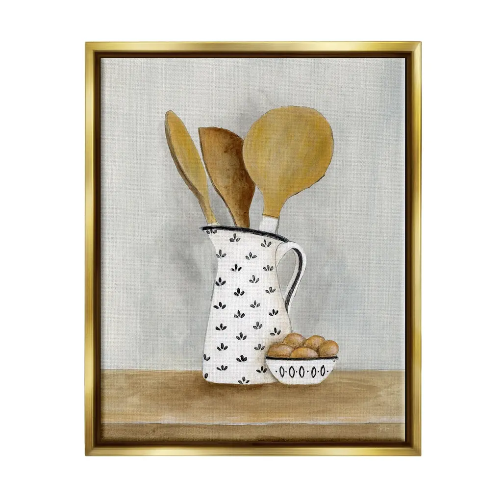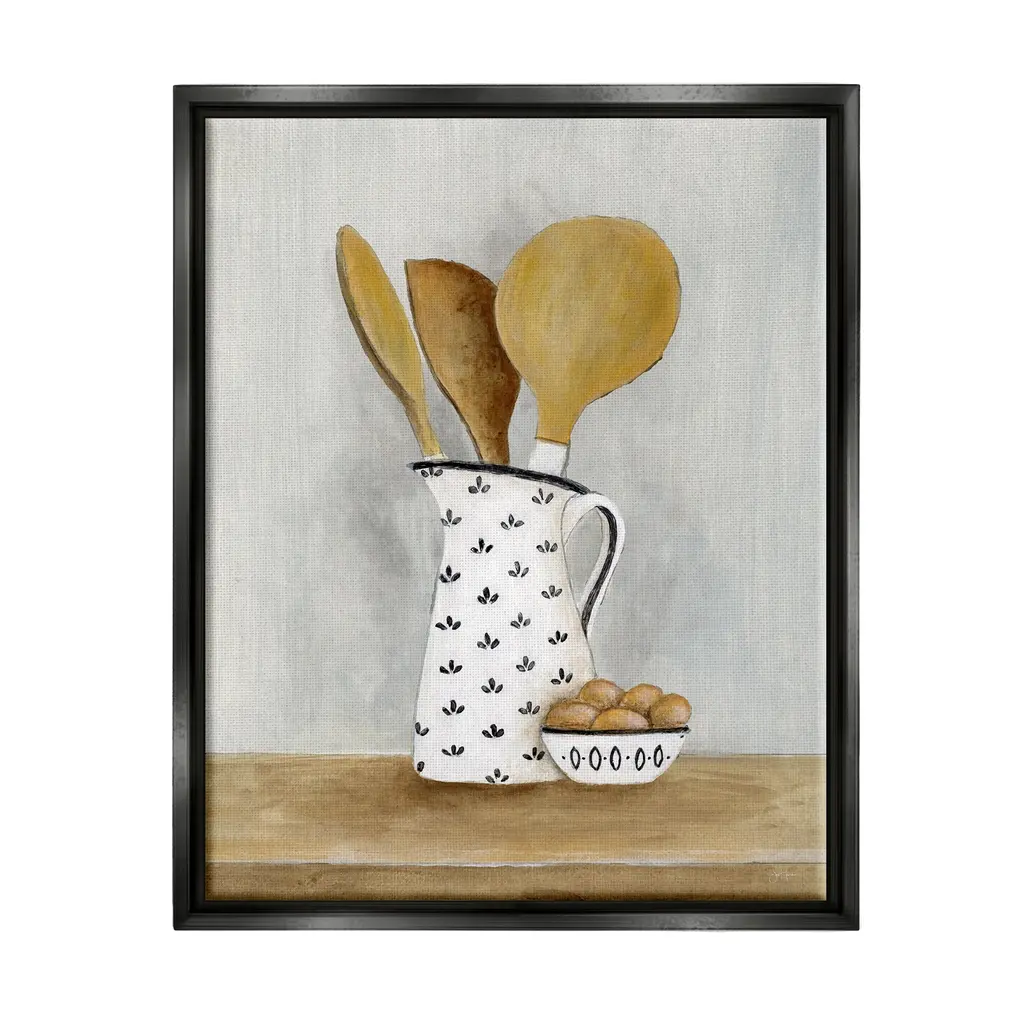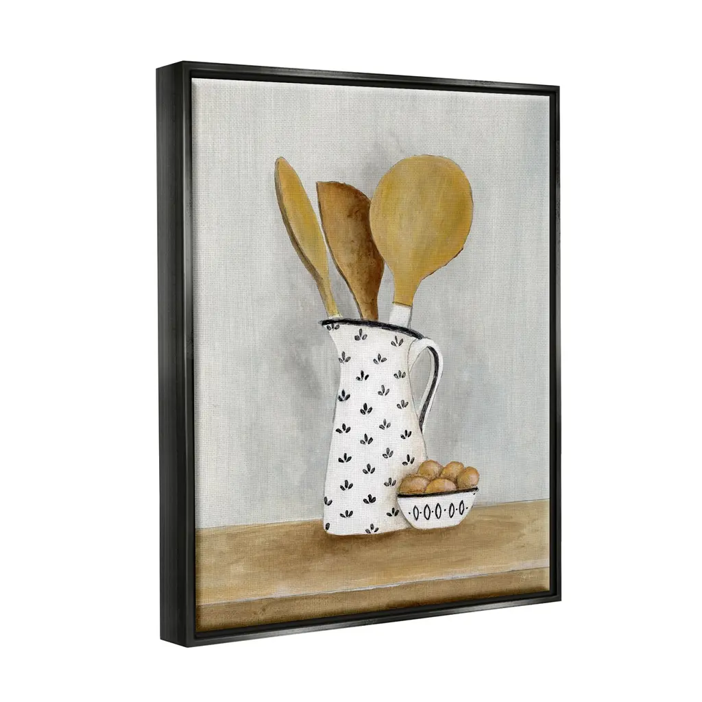 Elevate your home or office to the next level with Stupell Framed Floating Canvas Wall Art. Our premium hand-stretched canvas is mounted securely into a sturdy lightweight frame. The museum-style gap between the wrapped canvas and the box frame gives the illusion of floating artwork. Stupell Wall Art is made in the USA.Features: Dimensions: 17 x 1.7 x 21 Frame, 16 x 1.5 x 20 Canvas ArtFloating Frame Sizes Include Standard: 17 x 1.7 x 21 Oversized: 25 x 1.7 x 31Wall Art is Ready to Hang - No Installation or Hardware Needed. For Easy Set Up Lean or Layer Artwork on Shelf or Against Wall.Our elevated 1.7" Thick Floating Frame is the perfect complement to our canvas style Wall Art. We use only the highest quality inks in house with industry leading printing solutions. Canvas is hand stretched over a durable wood foundation and then mounted securly into a Modern Box Frame. Made in the USA.Artwork Relates To: Cutlery, Spoon, Food, Eggs, Kitchen Utensil, Wooden Spoon, KitchenDesign by Janet Tava
