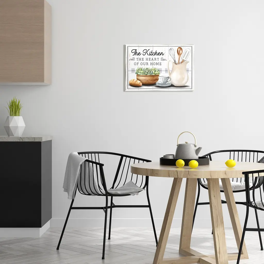 Our wall plaques start as high-quality lithograph prints mounted on durable 0.5-inch thick MDF wood. Each piece is hand finished and comes with a fresh layer of white foil on the sides to give it a crisp, clean look. Plaques arrive ready to hang without installation and come with removable plastic corners to keep them from damage in transit. Wall Art is made in the USA.Features: Dimensions: 15 x 0.5 x 10 InchesWall Plaque Sizes Include Standard: 15 x 0.5 x 10 Oversized: 19 x 0.5 x 13Wall Art is Ready to Hang with Hardware Free Hanging. No installation required. For Easy Set Up Lean or Layer Artwork on Shelf or Against Wall.All of our wall plaques start off as high quality lithograph prints that are then mounted on durable 0.5 inch thick MDF wood. Each piece is hand finished and comes with a fresh layer of foil on the sides to give it a crisp clean look. Made In USA.Artwork Relates To: Cutlery, Spoon, Fork, Kitchen, Utensils, Plaid, Tartan, Teacup, Bread, Succulent, Plant, The Kitchen The Heart of Our HomeDesign by Elizabeth Tyndall