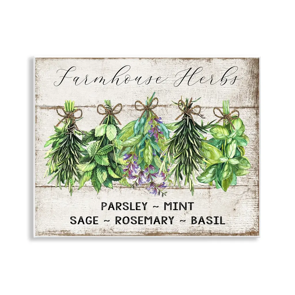 Stupell Kitchen Herb Reference Chart Garden Fresh Home Seasoning Canvas Wall Art - Green - 16 X 20