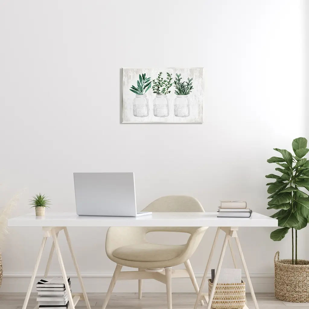 Our wall plaques start as high-quality lithograph prints mounted on durable 0.5-inch thick MDF wood. Each piece is hand finished and comes with a fresh layer of white foil on the sides to give it a crisp, clean look. Plaques arrive ready to hang without installation and come with removable plastic corners to keep them from damage in transit. Stupell Wall Art is made in the USA.Features: Dimensions: 15 x 0.5 x 10 InchesWall Plaque Sizes Include Standard: 15 x 0.5 x 10 Oversized: 19 x 0.5 x 13Wall Art is Ready to Hang with Hardware Free Hanging. No installation required. For Easy Set Up Lean or Layer Artwork on Shelf or Against Wall.All of our wall plaques start off as high quality lithograph prints that are then mounted on durable 0.5 inch thick MDF wood. Each piece is hand finished and comes with a fresh layer of foil on the sides to give it a crisp clean look. Made In USA.Artwork Relates To: Jar, Plant, Leaf, Herb, KitchenDesign by Lettered and Lined