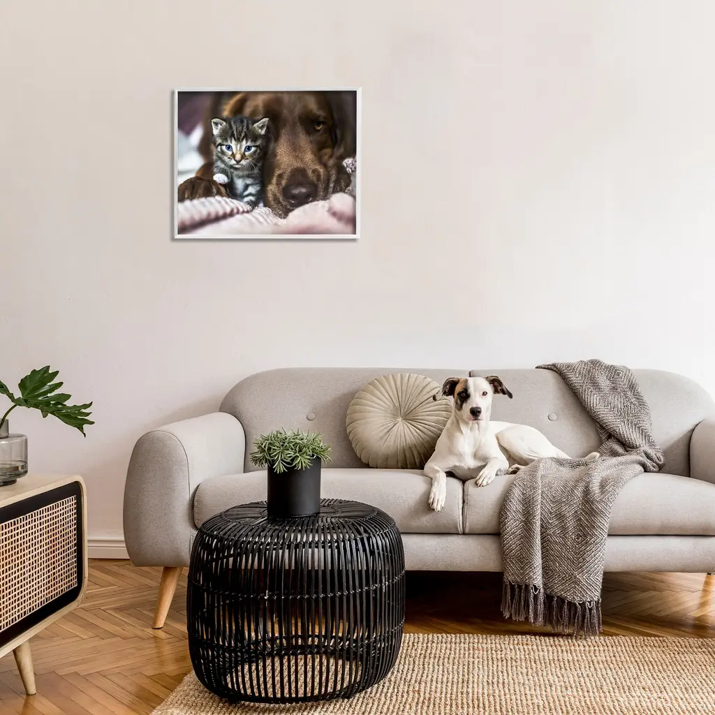 Stupell Kitten & Dog Snuggling Framed Giclee Art Design By Natalie Grosse - 30 X 24 - White