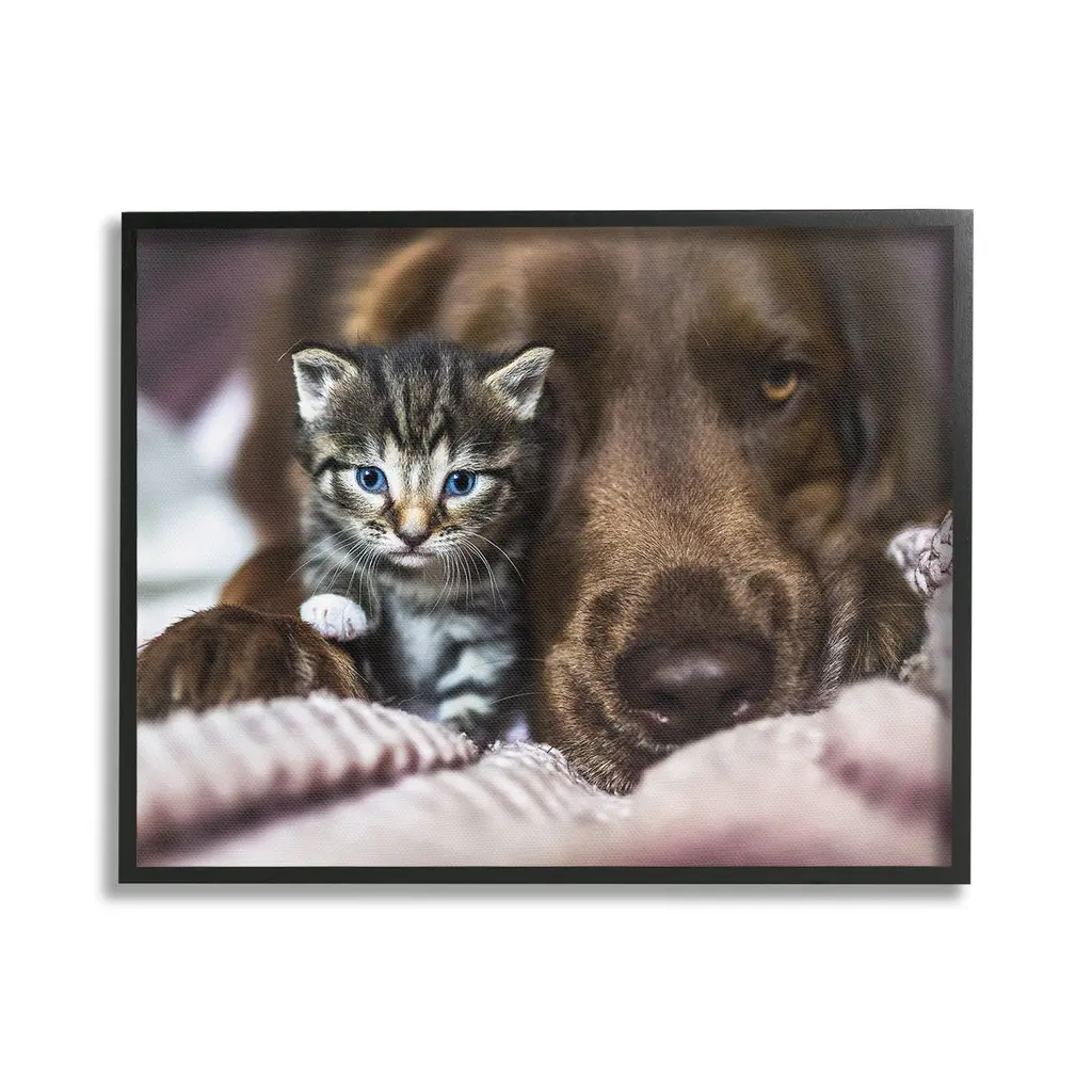 Add dimension to any room with our textured Framed Giclee Artwork. Our framed artwork is securely mounted into a 1.5-inch thick wood grain frame and ready to hang. Frames are available in three alluring styles: black, gray farmhouse and white. In addition, you should check out our oversized options if you want a statement piece. Stupell Wall Art is made in the USA.Features: Dimensions: 14 x 1.5 x 11 FramedFramed Giclee Products are available in the sizes 14"x11", 20"x16" or 30"x24". All Framed Giclee Products have a 1.5" Depth. Wall Art is Ready to Hang with Hardware Free Hanging. No installation required. For Easy Set Up Lean or Layer Artwork on Shelf or Against Wall.Our giclée prints are carefully mounted on a durable MDF backing, and then perfectly finished in a 1.5 inch thick woodgrain frame. Mounted frame colors include black, gray farmhouse and white. Made In USA.Artwork Relates To: Animal, Canine, Mammal, Pet, Dog, Puppy, Kitten, Cat, BlanketDesign by Natalie Grosse