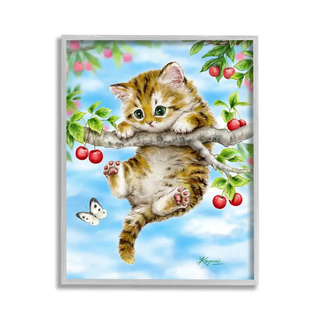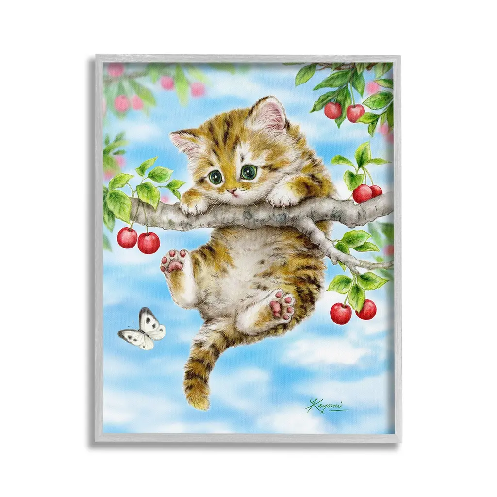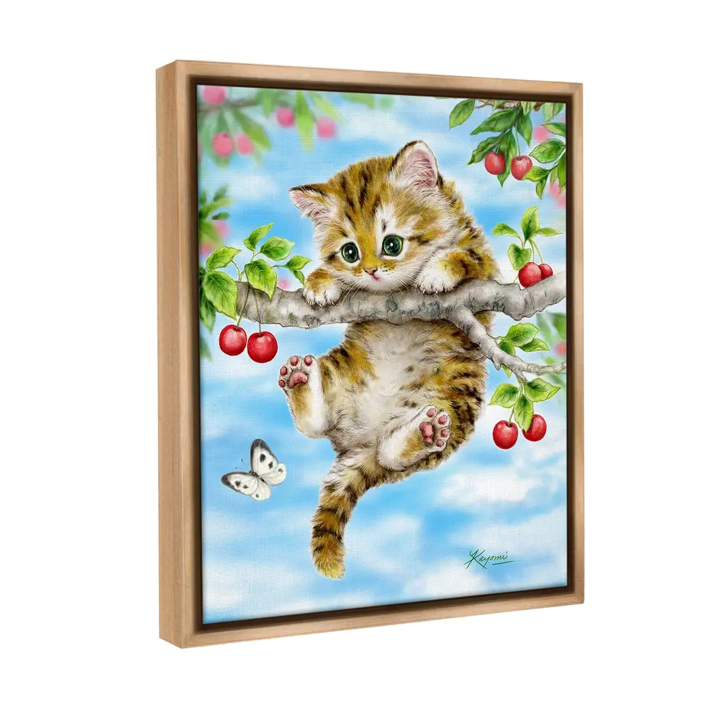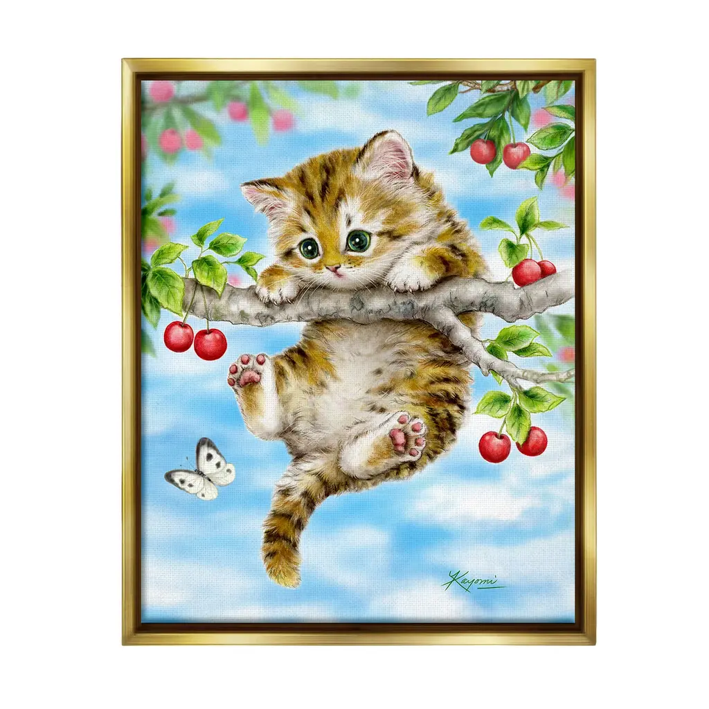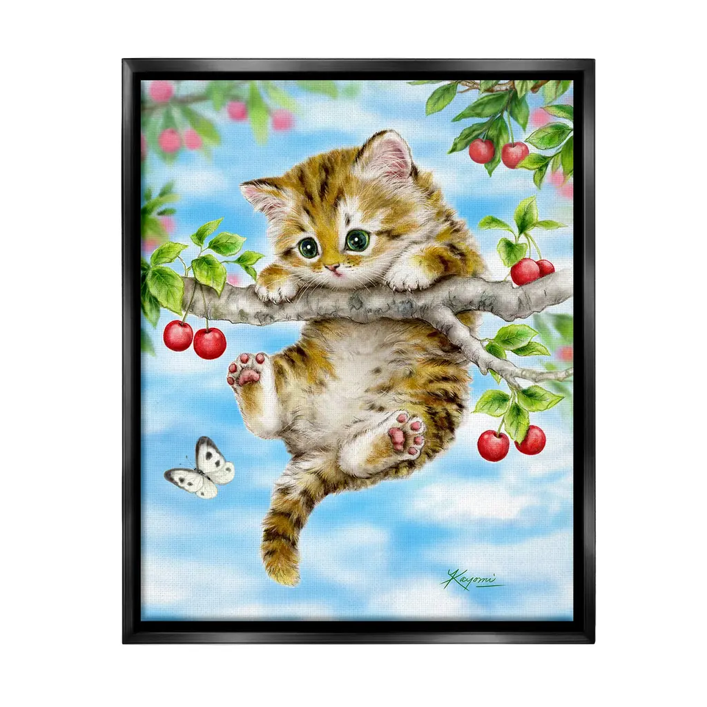 Elevate your home or office to the next level with Stupell Framed Floating Canvas Wall Art. Our premium hand-stretched canvas is mounted securely into a sturdy lightweight frame. The museum-style gap between the wrapped canvas and the box frame gives the illusion of floating artwork. Stupell Wall Art is made in the USA.Features: Dimensions: 17 x 1.7 x 21 Frame, 16 x 1.5 x 20 Canvas ArtFloating Frame Canvas Products are available in sizes 17"x21" and 25"x31". All Floating Frame Canvas Products have a 1.7" Depth.Wall Art is Ready to Hang with Hardware Free Hanging. No Installation required. For Easy Set Up Lean or Layer Artwork on Shelf or Against Wall. Artwork is Permently Fixed into the Frame.Our elevated 1.7" Thick Floating Frame is the perfect complement to our canvas style Wall Art. We use only the highest quality inks in house with industry leading printing solutions. Canvas is hand stretched over a durable wood foundation and then mounted securly into a Modern Box Frame. Made in the USA.Artwork Relates To: Animal, Cat, Mammal, Pet, Kitten, Tree, Cherry, Butterfly, NatureDesign by Kayomi Harai