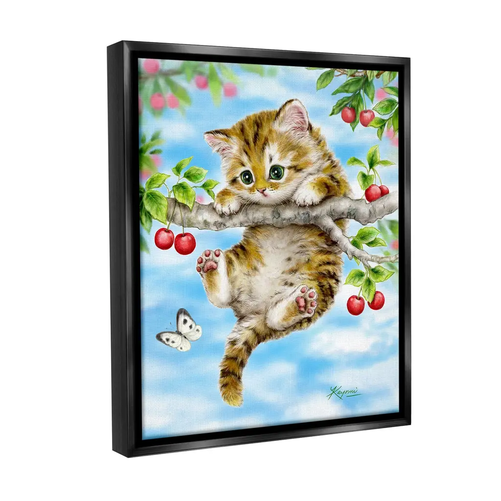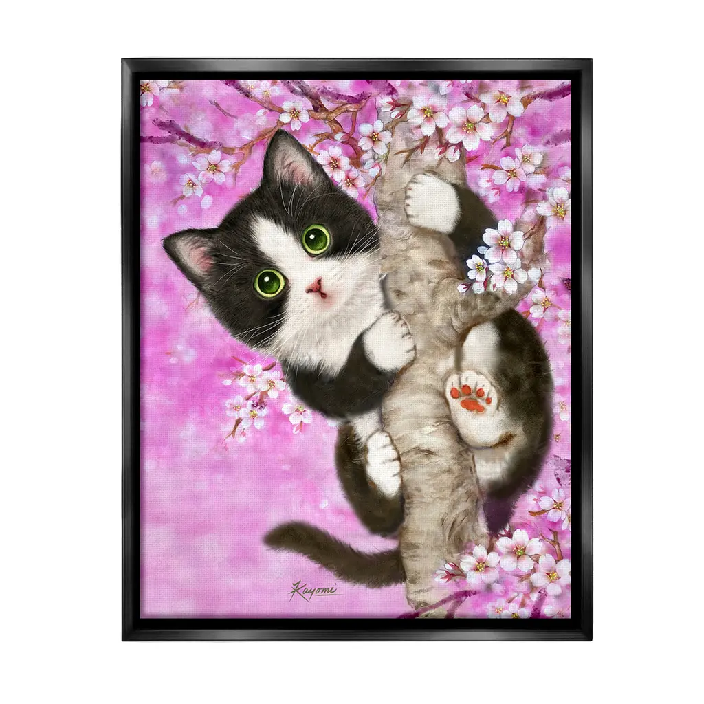 Elevate your home or office to the next level with Stupell Framed Floating Canvas Wall Art. Our premium hand-stretched canvas is mounted securely into a sturdy lightweight frame. The museum-style gap between the wrapped canvas and the box frame gives the illusion of floating artwork. Stupell Wall Art is made in the USA.Features: Dimensions: 17 x 1.7 x 21 Frame, 16 x 1.5 x 20 Canvas ArtFloating Frame Canvas Products are available in sizes 17"x21" and 25"x31". All Floating Frame Canvas Products have a 1.7" Depth.Wall Art is Ready to Hang with Hardware Free Hanging. No Installation required. For Easy Set Up Lean or Layer Artwork on Shelf or Against Wall. Artwork is Permently Fixed into the Frame.Our elevated 1.7" Thick Floating Frame is the perfect complement to our canvas style Wall Art. We use only the highest quality inks in house with industry leading printing solutions. Canvas is hand stretched over a durable wood foundation and then mounted securly into a Modern Box Frame. Made in the USA.Artwork Relates To: Animal, Cat, Mammal, Pet, Kitten, Tree, Cherry, Butterfly, NatureDesign by Kayomi Harai