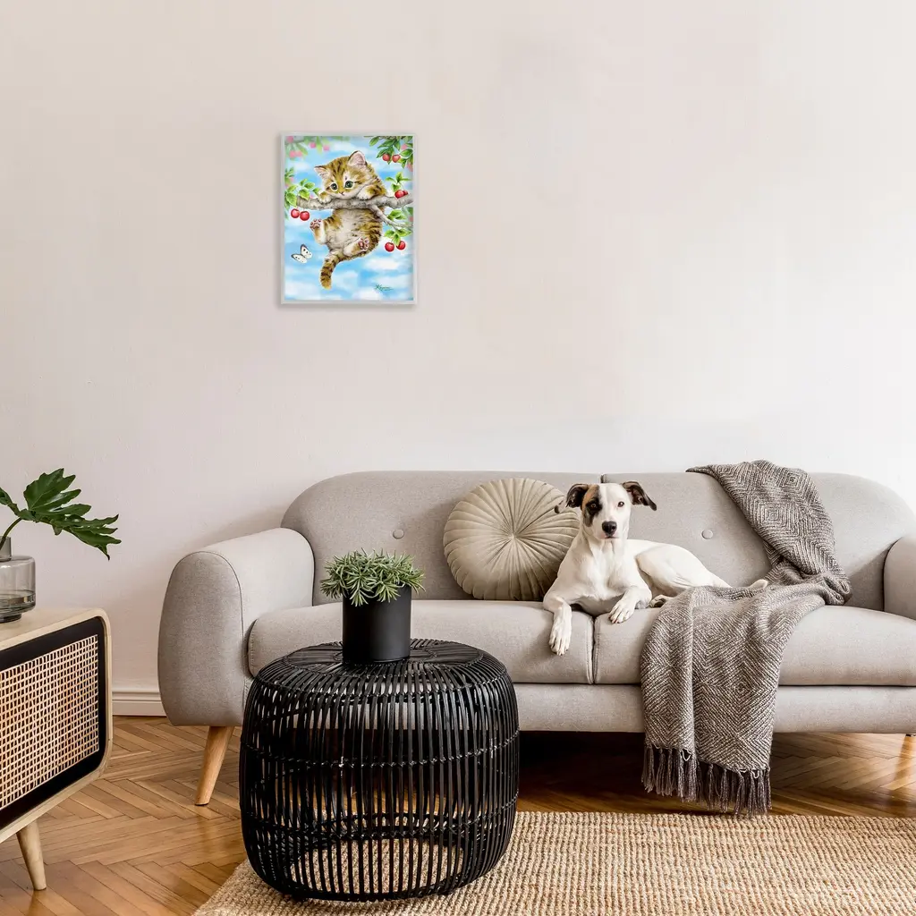 Add dimension to any room with our textured Framed Giclee Artwork. Our framed artwork is securely mounted into a 1.5-inch thick wood grain frame and ready to hang. Frames are available in three alluring styles: black, gray farmhouse and white. In addition, you should check out our oversized options if you want a statement piece. Stupell Wall Art is made in the USA.Features: Dimensions: 11 x 1.5 x 14 FramedFramed Giclee Products are available in the sizes 11"x14", 16"x20" or 24"x30". All Framed Giclee Products have a 1.5" Depth. Wall Art is Ready to Hang with Hardware Free Hanging. No installation required. For Easy Set Up Lean or Layer Artwork on Shelf or Against Wall.Our giclée prints are carefully mounted on a durable MDF backing, and then perfectly finished in a 1.5 inch thick woodgrain frame. Mounted frame colors include black, gray farmhouse and white. Made In USA.Artwork Relates To: Animal, Cat, Mammal, Pet, Kitten, Tree, Cherry, Butterfly, NatureDesign by Kayomi Harai