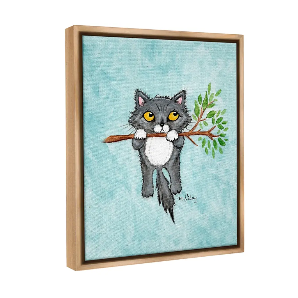 Elevate your home or office to the next level with Stupell Framed Floating Canvas Wall Art. Our premium hand-stretched canvas is mounted securely into a sturdy lightweight frame. The museum-style gap between the wrapped canvas and the box frame gives the illusion of floating artwork. Stupell Wall Art is made in the USA.Features: Dimensions: 17 x 1.7 x 21 Frame, 16 x 1.5 x 20 Canvas ArtFloating Frame Canvas Products are available in sizes 17"x21" and 25"x31". All Floating Frame Canvas Products have a 1.7" Depth.Wall Art is Ready to Hang with Hardware Free Hanging. No Installation required. For Easy Set Up Lean or Layer Artwork on Shelf or Against Wall. Artwork is Permently Fixed into the Frame.Our elevated 1.7" Thick Floating Frame is the perfect complement to our canvas style Wall Art. We use only the highest quality inks in house with industry leading printing solutions. Canvas is hand stretched over a durable wood foundation and then mounted securly into a Modern Box Frame. Made in the USA.Artwork Relates To: Painting, Animal, Cat, Mammal, Pet, Branch, BotanicalDesign by Michelle Gilsey