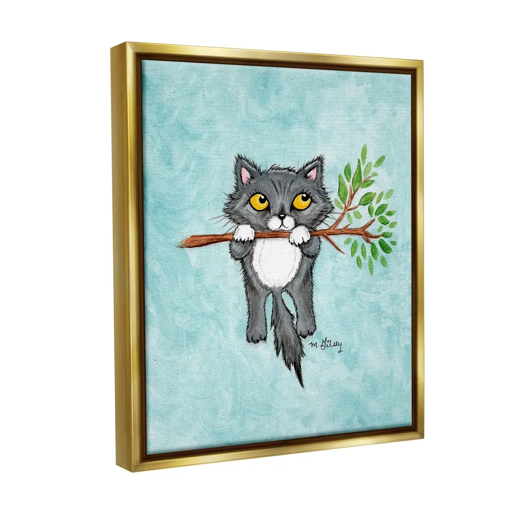 Stupell Kitten Climbing Branch Framed Floater Canvas Wall Art Design By Michelle Gilsey - 25 X 31 - Gold