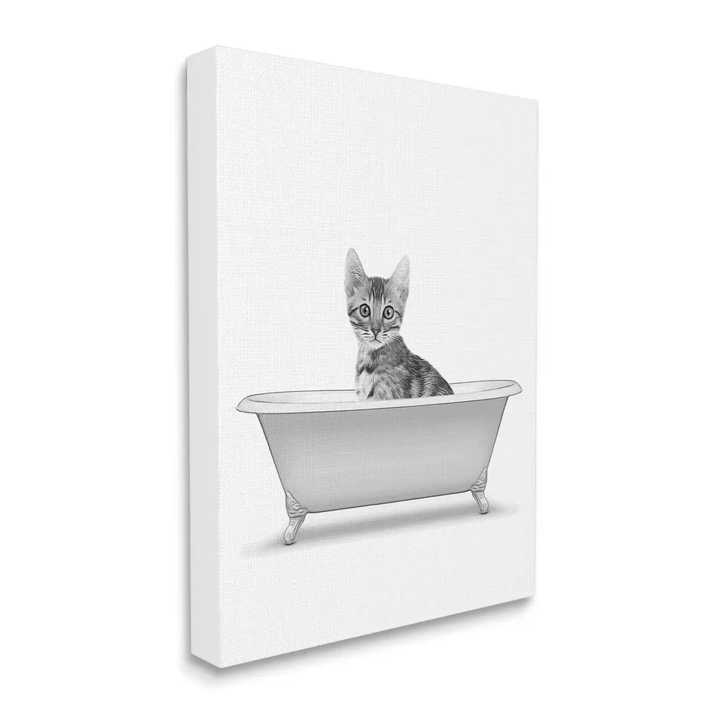 Stupell Kitten In Bathroom Tub Animal Canvas Wall Art By Annalisa Latella - 24 X 30