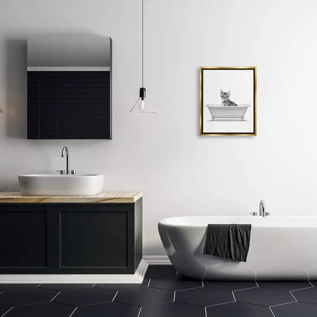 Stupell Kitten In Bathroom Tub Animal Framed Floater Canvas Wall Art By Annalisa Latella - 16 X 20 - Gold