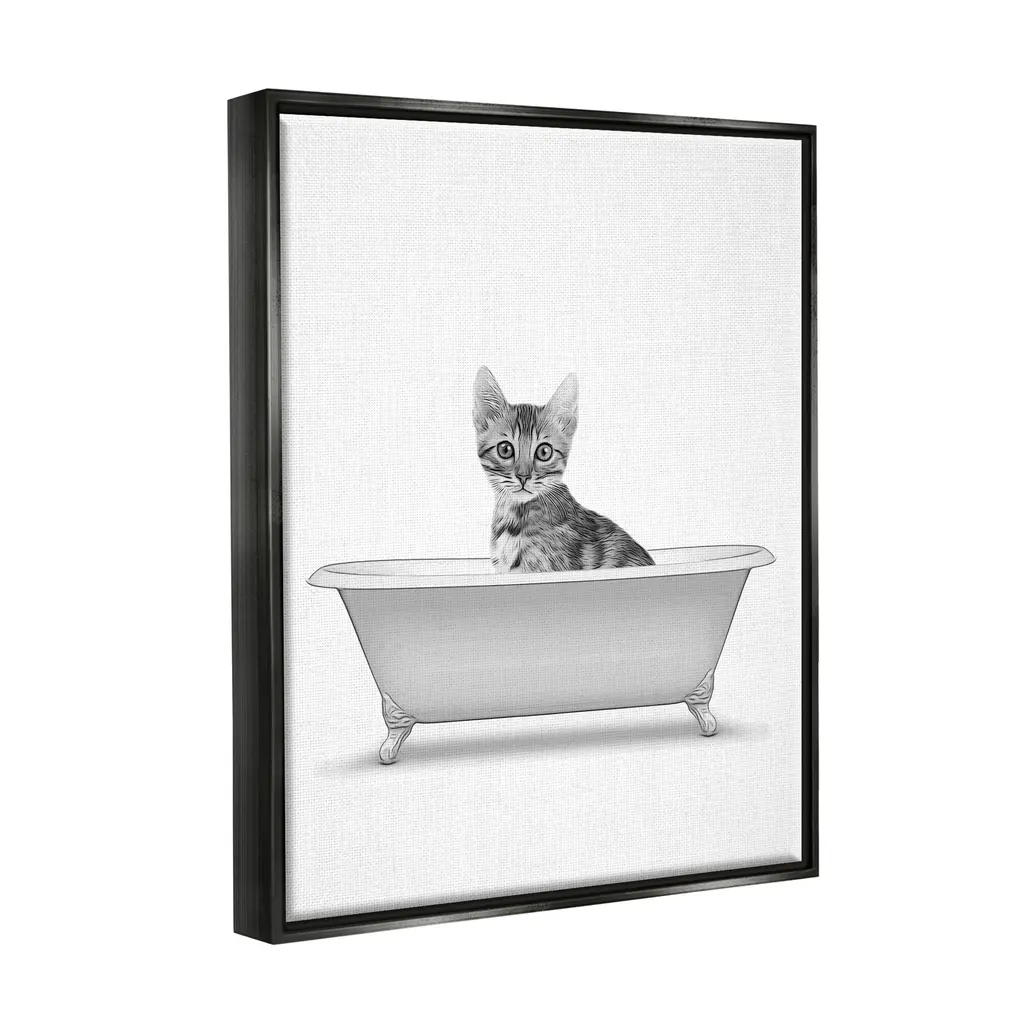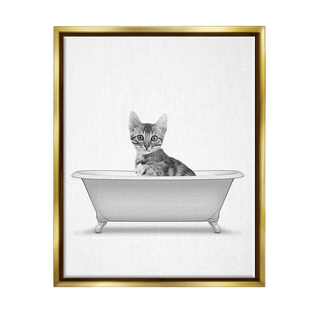 Stupell Kitten In Bathroom Tub Animal Framed Floater Canvas Wall Art By Annalisa Latella - 24 X 30 - Black