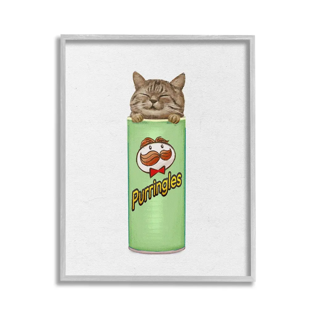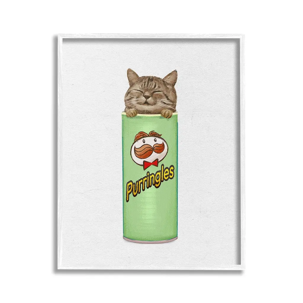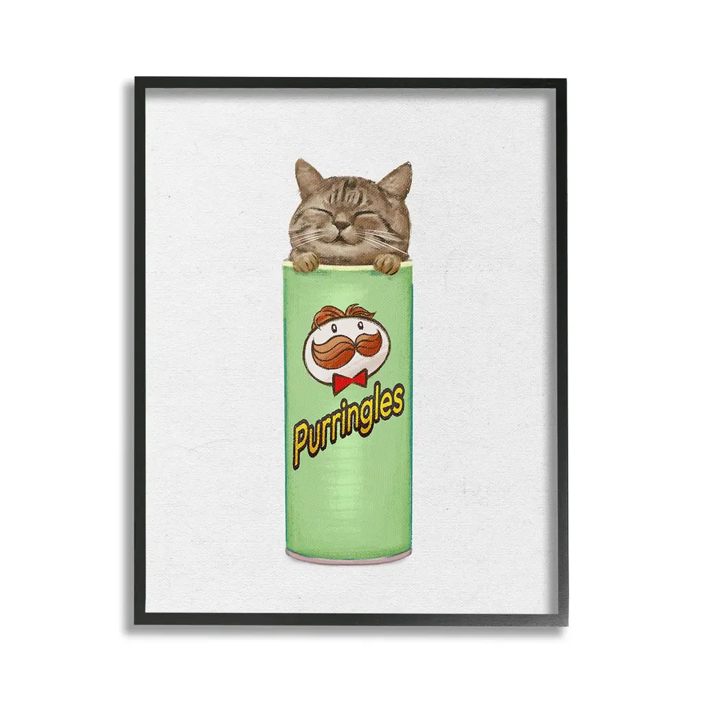 Our wall plaques start as high-quality lithograph prints mounted on durable 0.5-inch thick MDF wood. Each piece is hand finished and comes with a fresh layer of white foil on the sides to give it a crisp, clean look. Plaques arrive ready to hang without installation and come with removable plastic corners to keep them from damage in transit. Stupell Wall Art is made in the USA.Features: Dimensions: 10 x 0.5 x 15 InchesWall Plaque Product Sizes Include 10"x15" and 13"x19". All wall plaque products have a 0.5" Depth. Wall Art is Ready to Hang with Hardware Free Hanging. No installation required. For Easy Set Up Lean or Layer Artwork on Shelf or Against Wall.All of our wall plaques start off as high quality lithograph prints that are then mounted on durable 0.5 inch thick MDF wood. Each piece is hand finished and comes with a fresh layer of foil on the sides to give it a crisp clean look. Made In USA.Artwork Relates To: Tin, Can, Animal, Cat, Mammal, Pet, Snack, Chips, KittenDesign by Ziwei Li