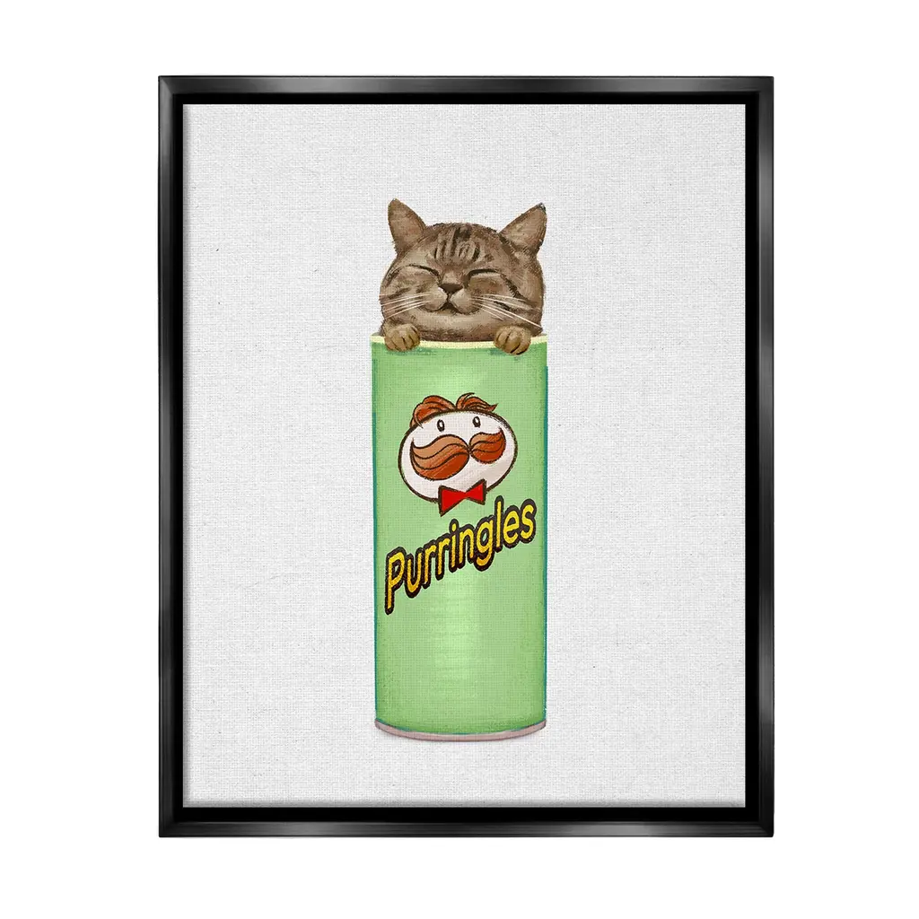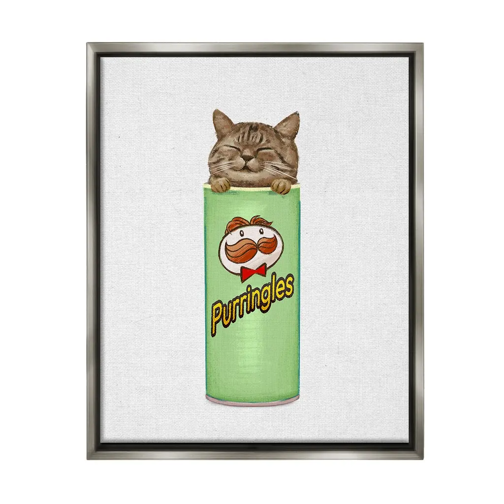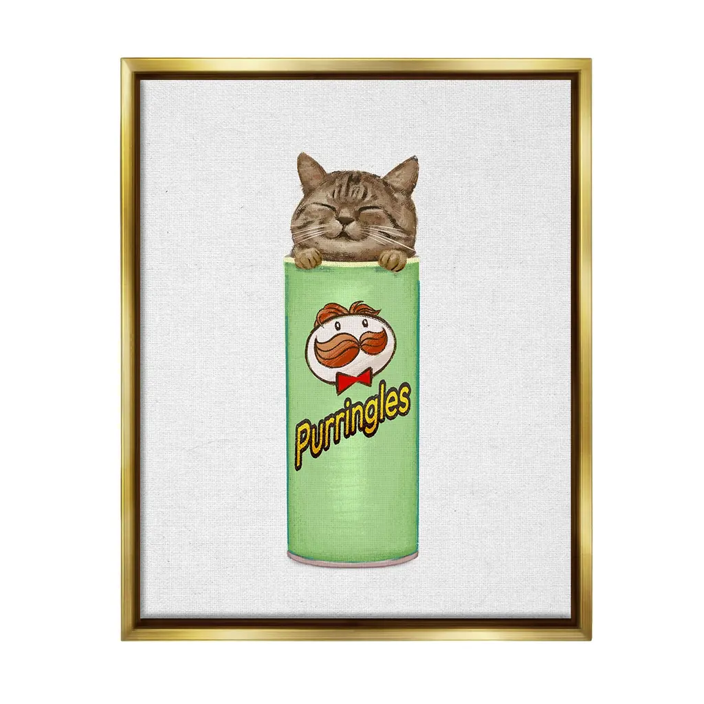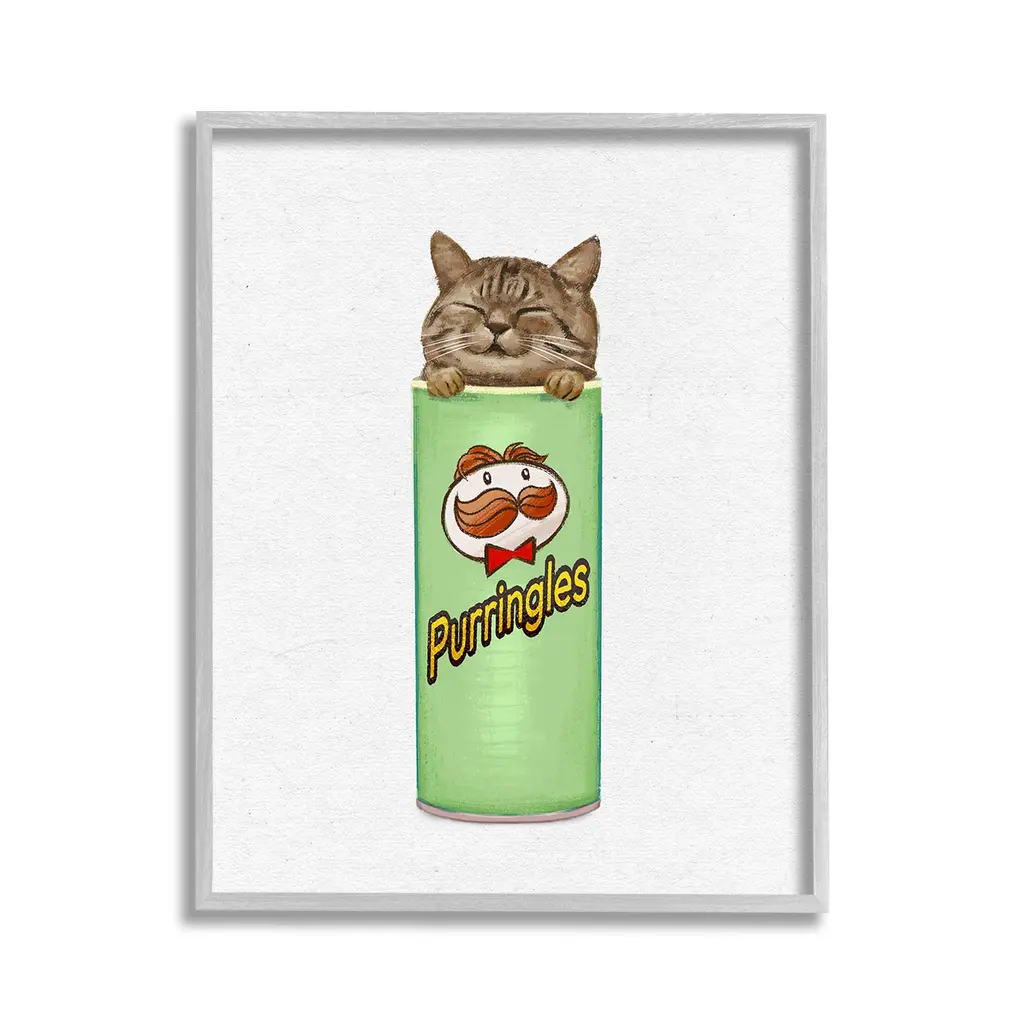 Our wall plaques start as high-quality lithograph prints mounted on durable 0.5-inch thick MDF wood. Each piece is hand finished and comes with a fresh layer of white foil on the sides to give it a crisp, clean look. Plaques arrive ready to hang without installation and come with removable plastic corners to keep them from damage in transit. Stupell Wall Art is made in the USA.Features: Dimensions: 10 x 0.5 x 15 InchesWall Plaque Product Sizes Include 10"x15" and 13"x19". All wall plaque products have a 0.5" Depth. Wall Art is Ready to Hang with Hardware Free Hanging. No installation required. For Easy Set Up Lean or Layer Artwork on Shelf or Against Wall.All of our wall plaques start off as high quality lithograph prints that are then mounted on durable 0.5 inch thick MDF wood. Each piece is hand finished and comes with a fresh layer of foil on the sides to give it a crisp clean look. Made In USA.Artwork Relates To: Tin, Can, Animal, Cat, Mammal, Pet, Snack, Chips, KittenDesign by Ziwei Li