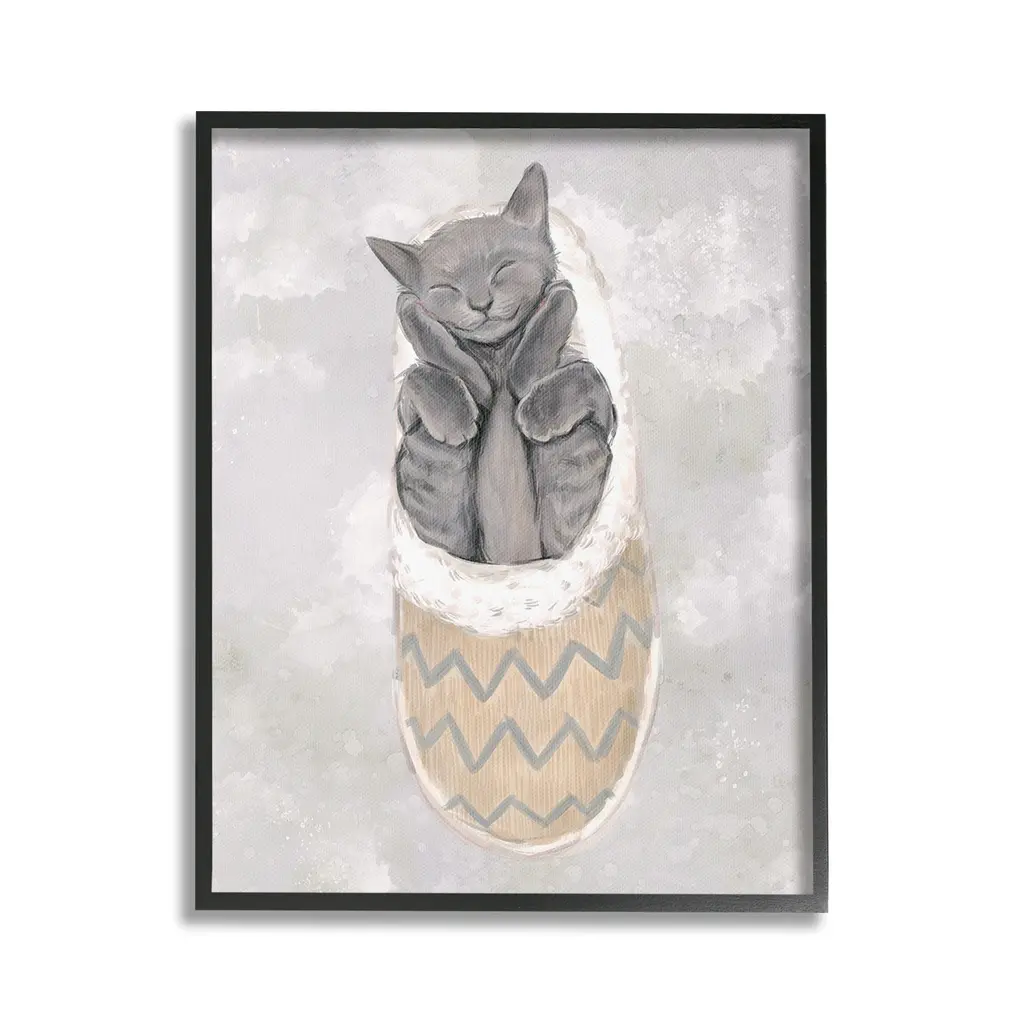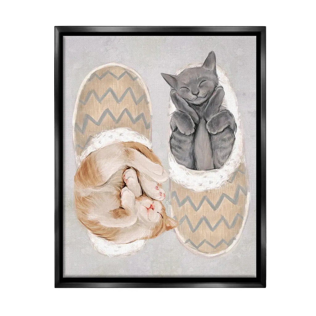 Elevate your home or office to the next level with Stupell Framed Floating Canvas Wall Art. Our premium hand-stretched canvas is mounted securely into a sturdy lightweight frame. The museum-style gap between the wrapped canvas and the box frame gives the illusion of floating artwork. Stupell Wall Art is made in the USA.Features: Dimensions: 17 x 1.7 x 21 Frame, 16 x 1.5 x 20 Canvas ArtFloating Frame Canvas Products are available in sizes 17"x21" and 25"x31". All Floating Frame Canvas Products have a 1.7" Depth.Wall Art is Ready to Hang with Hardware Free Hanging. No Installation required. For Easy Set Up Lean or Layer Artwork on Shelf or Against Wall. Artwork is Permently Fixed into the Frame.Our elevated 1.7" Thick Floating Frame is the perfect complement to our canvas style Wall Art. We use only the highest quality inks in house with industry leading printing solutions. Canvas is hand stretched over a durable wood foundation and then mounted securly into a Modern Box Frame. Made in the USA.Artwork Relates To: Animal, Pet, Cat, Kitten, Slipper, Cozy, Rest, Relax, SleepDesign by Ziwei Li