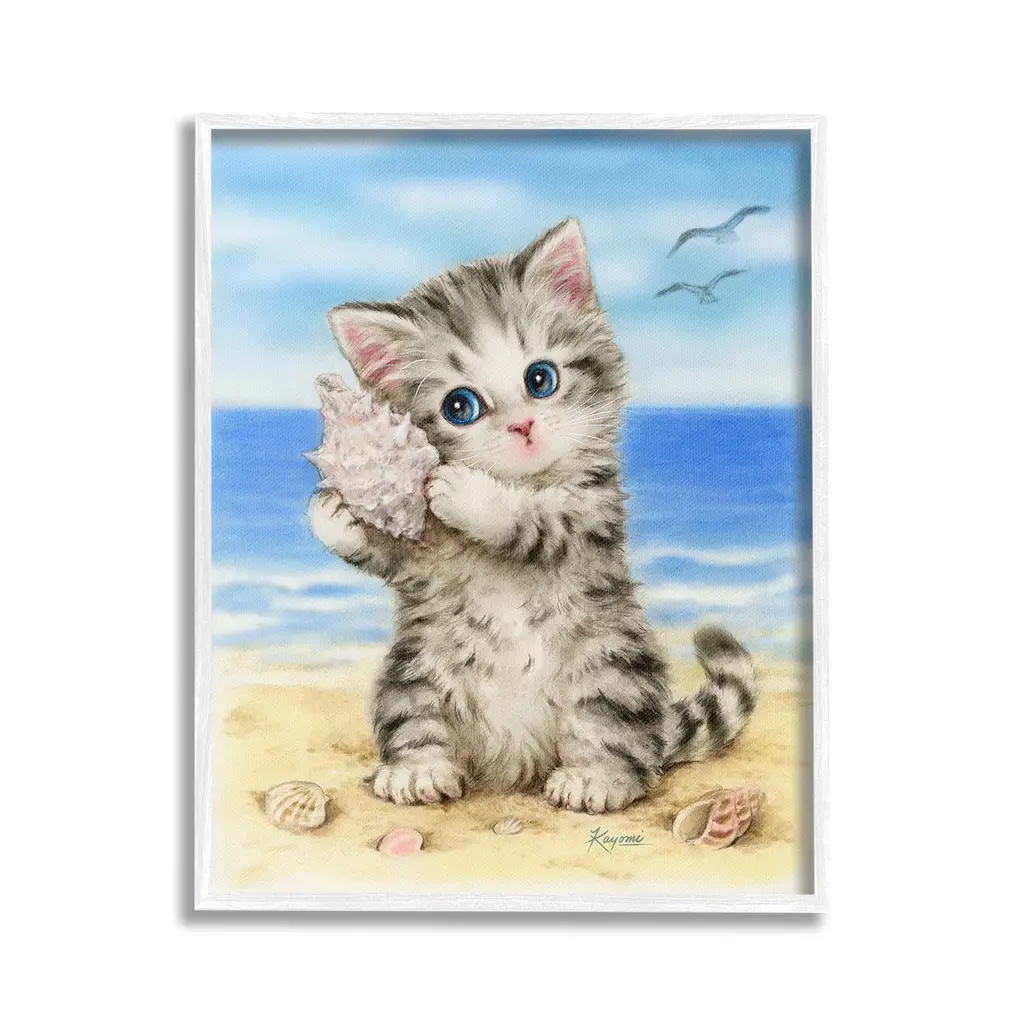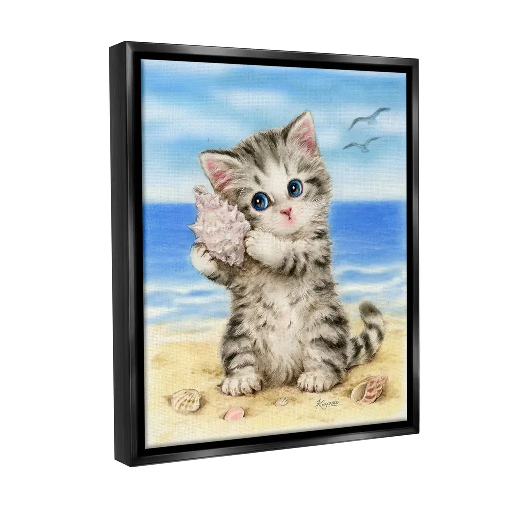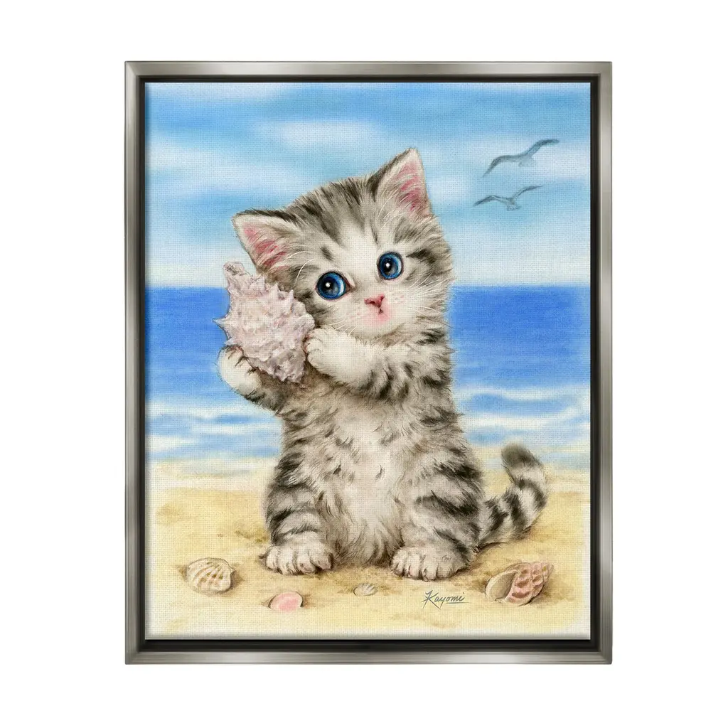 Elevate your home or office to the next level with Stupell Framed Floating Canvas Wall Art. Our premium hand-stretched canvas is mounted securely into a sturdy lightweight frame. The museum-style gap between the wrapped canvas and the box frame gives the illusion of floating artwork. Stupell Wall Art is made in the USA.Features: Dimensions: 17 x 1.7 x 21 Frame, 16 x 1.5 x 20 Canvas ArtFloating Frame Canvas Products are available in sizes 17"x21" and 25"x31". All Floating Frame Canvas Products have a 1.7" Depth.Wall Art is Ready to Hang with Hardware Free Hanging. No Installation required. For Easy Set Up Lean or Layer Artwork on Shelf or Against Wall. Artwork is Permently Fixed into the Frame.Our elevated 1.7" Thick Floating Frame is the perfect complement to our canvas style Wall Art. We use only the highest quality inks in house with industry leading printing solutions. Canvas is hand stretched over a durable wood foundation and then mounted securly into a Modern Box Frame. Made in the USA.Artwork Relates To: Animal, Cat, Mammal, Pet, Kitten, Seashell, Beach, Nautical, Tropical, Seagull, BirdDesign by Kayomi Harai