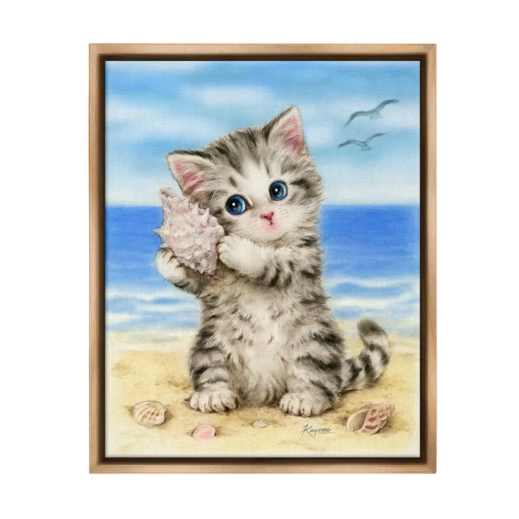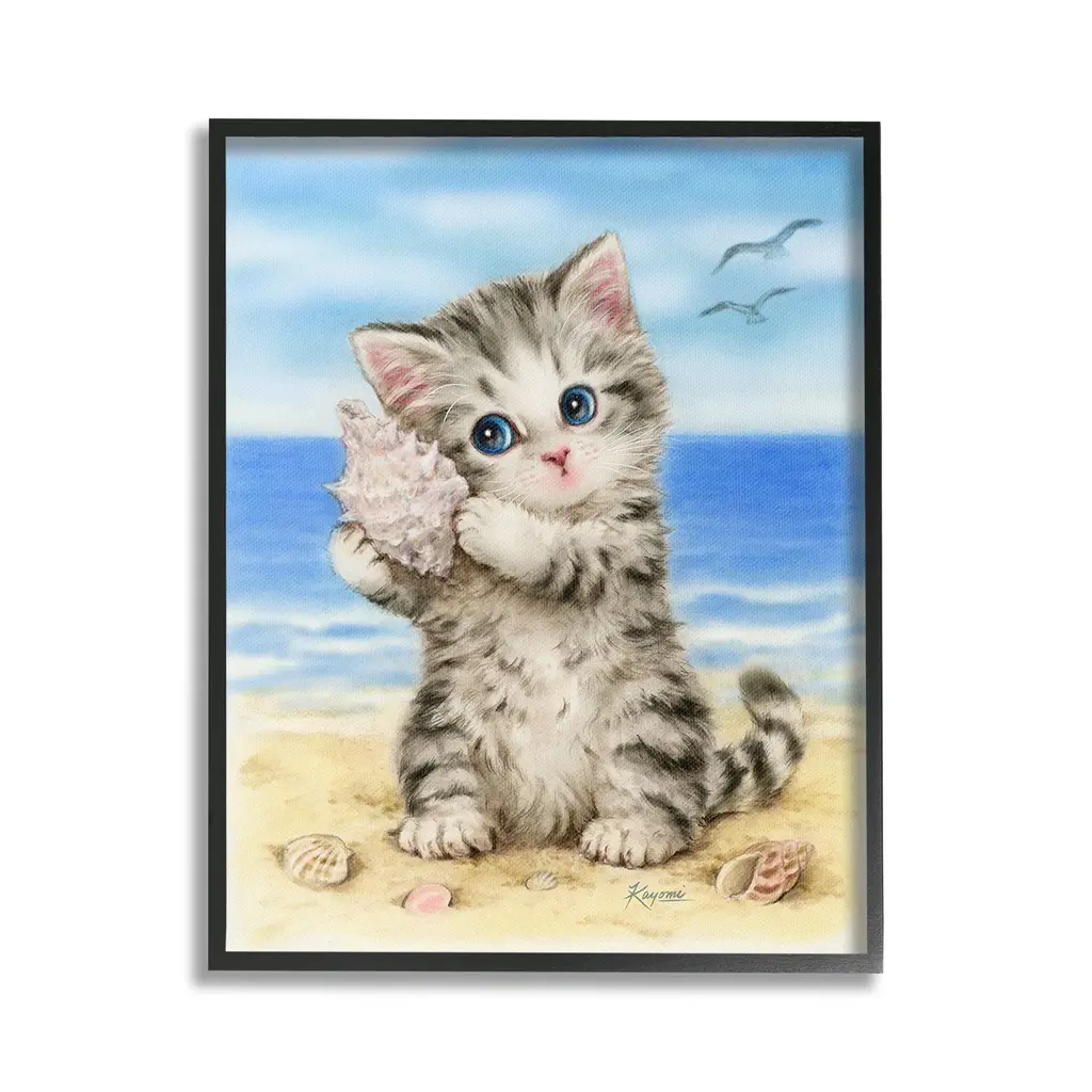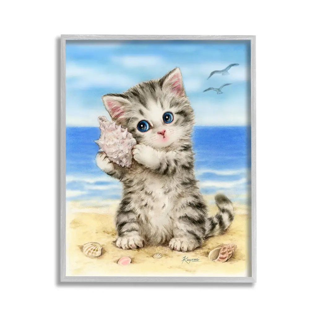 Elevate your home or office to the next level with Stupell Framed Floating Canvas Wall Art. Our premium hand-stretched canvas is mounted securely into a sturdy lightweight frame. The museum-style gap between the wrapped canvas and the box frame gives the illusion of floating artwork. Stupell Wall Art is made in the USA.Features: Dimensions: 17 x 1.7 x 21 Frame, 16 x 1.5 x 20 Canvas ArtFloating Frame Canvas Products are available in sizes 17"x21" and 25"x31". All Floating Frame Canvas Products have a 1.7" Depth.Wall Art is Ready to Hang with Hardware Free Hanging. No Installation required. For Easy Set Up Lean or Layer Artwork on Shelf or Against Wall. Artwork is Permently Fixed into the Frame.Our elevated 1.7" Thick Floating Frame is the perfect complement to our canvas style Wall Art. We use only the highest quality inks in house with industry leading printing solutions. Canvas is hand stretched over a durable wood foundation and then mounted securly into a Modern Box Frame. Made in the USA.Artwork Relates To: Animal, Cat, Mammal, Pet, Kitten, Seashell, Beach, Nautical, Tropical, Seagull, BirdDesign by Kayomi Harai