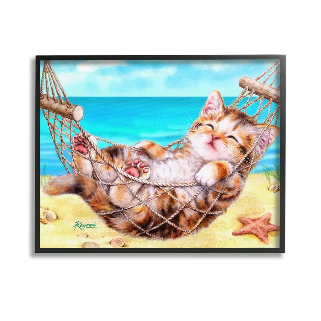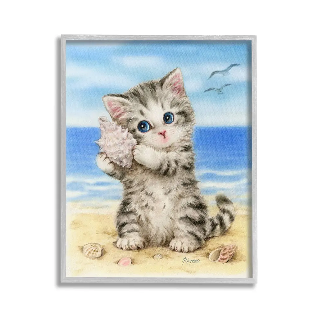 Add dimension to any room with our textured Framed Giclee Artwork. Our framed artwork is securely mounted into a 1.5-inch thick wood grain frame and ready to hang. Frames are available in three alluring styles: black, gray farmhouse and white. In addition, you should check out our oversized options if you want a statement piece. Stupell Wall Art is made in the USA.Features: Dimensions: 11 x 1.5 x 14 FramedFramed Giclee Products are available in the sizes 11"x14", 16"x20" or 24"x30". All Framed Giclee Products have a 1.5" Depth. Wall Art is Ready to Hang with Hardware Free Hanging. No installation required. For Easy Set Up Lean or Layer Artwork on Shelf or Against Wall.Our giclée prints are carefully mounted on a durable MDF backing, and then perfectly finished in a 1.5 inch thick woodgrain frame. Mounted frame colors include black, gray farmhouse and white. Made In USA.Artwork Relates To: Animal, Cat, Mammal, Pet, Kitten, Seashell, Beach, Nautical, Tropical, Seagull, BirdDesign by Kayomi Harai