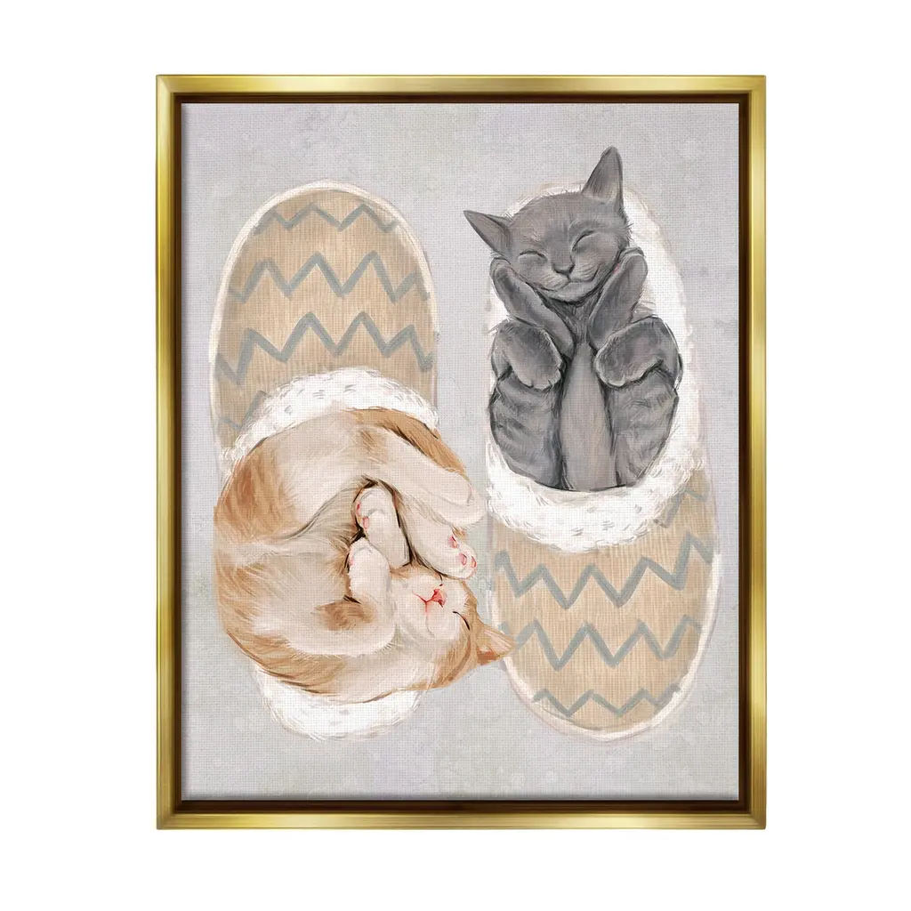 Elevate your home or office to the next level with Stupell Framed Floating Canvas Wall Art. Our premium hand-stretched canvas is mounted securely into a sturdy lightweight frame. The museum-style gap between the wrapped canvas and the box frame gives the illusion of floating artwork. Stupell Wall Art is made in the USA.Features: Dimensions: 17 x 1.7 x 21 Frame, 16 x 1.5 x 20 Canvas ArtFloating Frame Canvas Products are available in sizes 17"x21" and 25"x31". All Floating Frame Canvas Products have a 1.7" Depth.Wall Art is Ready to Hang with Hardware Free Hanging. No Installation required. For Easy Set Up Lean or Layer Artwork on Shelf or Against Wall. Artwork is Permently Fixed into the Frame.Our elevated 1.7" Thick Floating Frame is the perfect complement to our canvas style Wall Art. We use only the highest quality inks in house with industry leading printing solutions. Canvas is hand stretched over a durable wood foundation and then mounted securly into a Modern Box Frame. Made in the USA.Artwork Relates To: Animal, Pet, Cat, Kitten, Slipper, Cozy, Rest, Relax, SleepDesign by Ziwei Li