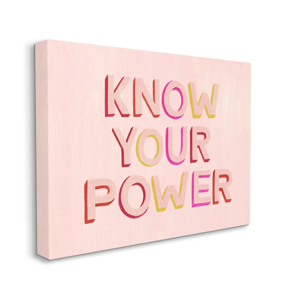 Stupell Know Your Power Pink Inspirational Canvas Wall Art By Grace Popp - 48 X 36