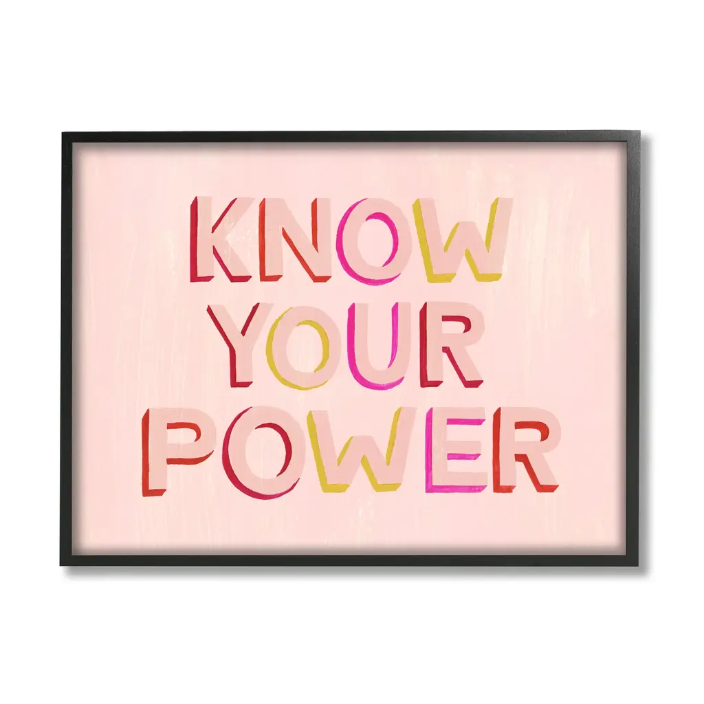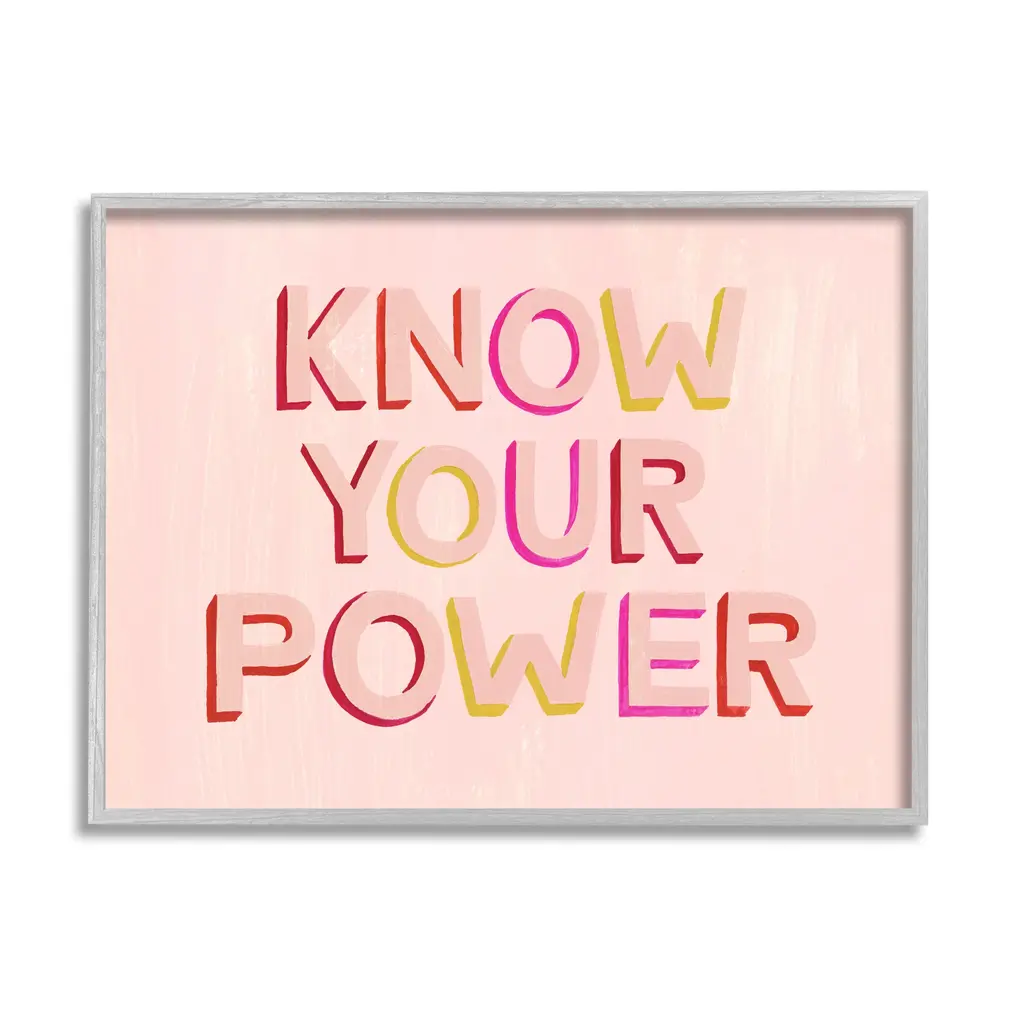 Add dimension to any room with our textured Framed Giclee Artwork. Our framed artwork is securely mounted into a 1.5-inch thick wood grain frame and ready to hang. Frames are available in three alluring styles: black, gray farmhouse and white. In addition, you should check out our oversized options if you want a statement piece. Stupell Wall Art is made in the USA.Features: Dimensions: 14 x 1.5 x 11 FramedFramed Giclee Sizes Include Standard: 14 x 1.5 x 11 Large: 20 x 1.5 x 16 Oversized: 30 x 1.5 x 24Wall Art is Ready to Hang - No Installation or Hardware Needed. For Easy Set Up Lean or Layer Artwork on Shelf or Against Wall.Our giclée prints are carefully mounted on a durable MDF backing, and then perfectly finished in a 1.5 inch thick woodgrain frame. Mounted frame colors include black, gray farmhouse and white. Made In USA.Artwork Relates To: Pink, Uplifting, Inspirational, Know Your PowerDesign by Grace Popp
