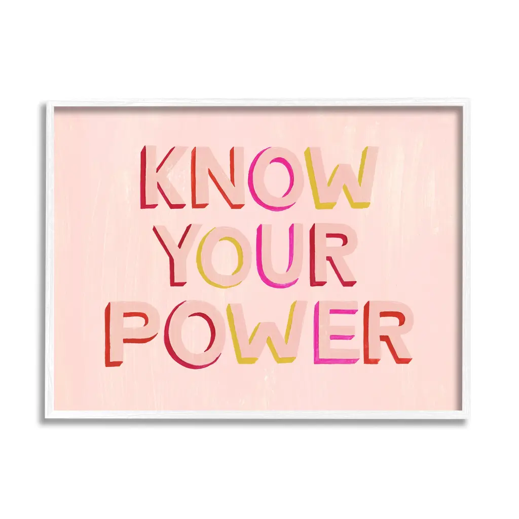 Stupell Know Your Power Pink Inspirational Framed Giclee Art By Grace Popp - 30 X 24 - White