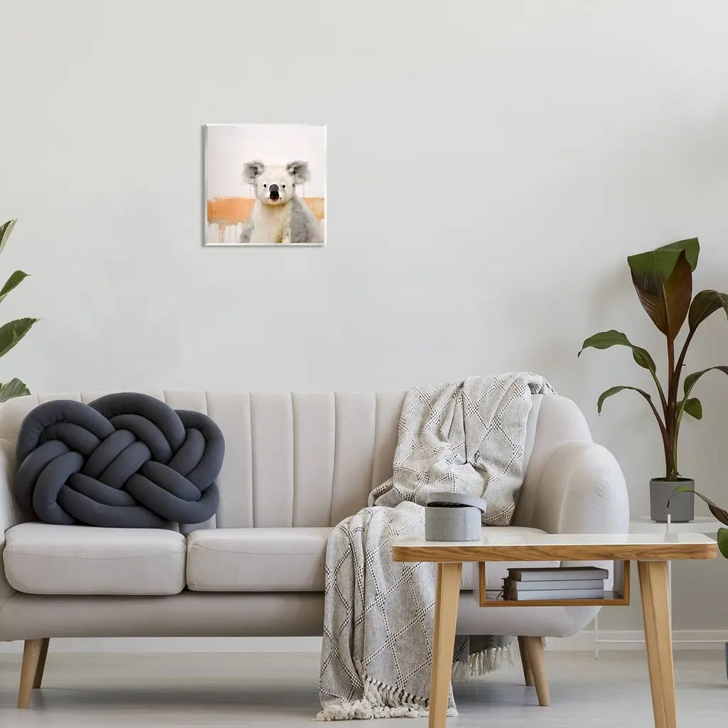 Our wall plaques start as high-quality lithograph prints mounted on durable 0.5-inch thick MDF wood. Each piece is hand finished and comes with a fresh layer of white foil on the sides to give it a crisp, clean look. Plaques arrive ready to hang without installation and come with removable plastic corners to keep them from damage in transit. Stupell Industries Wall Art is made in the USA.Features: Dimensions: 12 x 0.5 x 12 InchesWall Art is Ready to Hang with Hardware Free Hanging. No installation required. For Easy Set Up Lean or Layer Artwork on Shelf or Against Wall.All of our wall plaques start off as high quality lithograph prints that are then mounted on durable 0.5 inch thick MDF wood. Each piece is hand finished and comes with a fresh layer of foil on the sides to give it a crisp clean look. Made In USA.Artwork Relates To: Animal, Mammal, Abstract, Modern, KoalaDesign by Irena Orlov