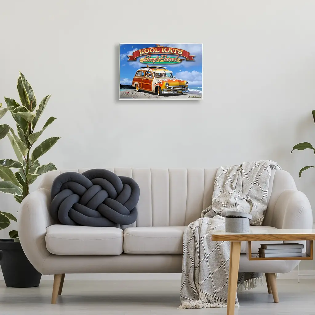 Our wall plaques start as high-quality lithograph prints mounted on durable 0.5-inch thick MDF wood. Each piece is hand finished and comes with a fresh layer of white foil on the sides to give it a crisp, clean look. Plaques arrive ready to hang without installation and come with removable plastic corners to keep them from damage in transit. Stupell Industries Wall Art is made in the USA.Features: Dimensions: 15 x 0.5 x 10 InchesWall Plaque Sizes Include Standard: 15 x 0.5 x 10 Oversized: 19 x 0.5 x 13Wall Art is Ready to Hang with Hardware Free Hanging. No installation required. For Easy Set Up Lean or Layer Artwork on Shelf or Against Wall.All of our wall plaques start off as high quality lithograph prints that are then mounted on durable 0.5 inch thick MDF wood. Each piece is hand finished and comes with a fresh layer of foil on the sides to give it a crisp clean look. Made In USA.Artwork Relates To: Car, Vehicle, Animal, Canine, Dog, Mammal, Pet, Bird, Cat, Caravan, Beach, Nautical, Summer, Vacation, Kool Kats Surf PatrolDesign by Larry Grossman
