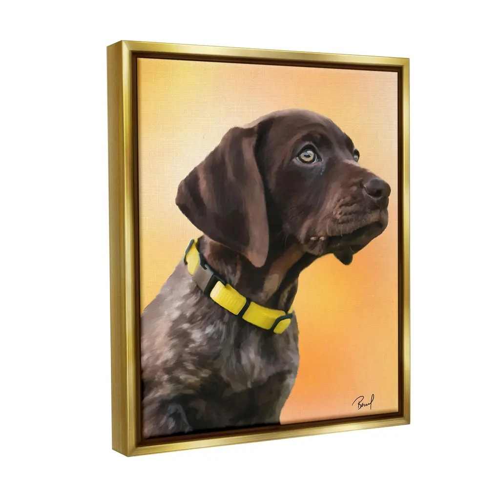 Elevate your home or office to the next level with Stupell Framed Floating Canvas Wall Art. Our premium hand-stretched canvas is mounted securely into a sturdy lightweight frame. The museum-style gap between the wrapped canvas and the box frame gives the illusion of floating artwork. Stupell Wall Art is made in the USA.Features: Dimensions: 17 x 1.7 x 21 Frame, 16 x 1.5 x 20 Canvas ArtFloating Frame Canvas Products are available in sizes 17"x21" and 25"x31". All Floating Frame Canvas Products have a 1.7" Depth.Wall Art is Ready to Hang with Hardware Free Hanging. No Installation required. For Easy Set Up Lean or Layer Artwork on Shelf or Against Wall. Artwork is Permently Fixed into the Frame.Our elevated 1.7" Thick Floating Frame is the perfect complement to our canvas style Wall Art. We use only the highest quality inks in house with industry leading printing solutions. Canvas is hand stretched over a durable wood foundation and then mounted securly into a Modern Box Frame. Made in the USA.Artwork Relates To: Animal, Canine, Dog, Mammal, Pet, Labrador Retriever, Hound, PuppyDesign by Renel Peters