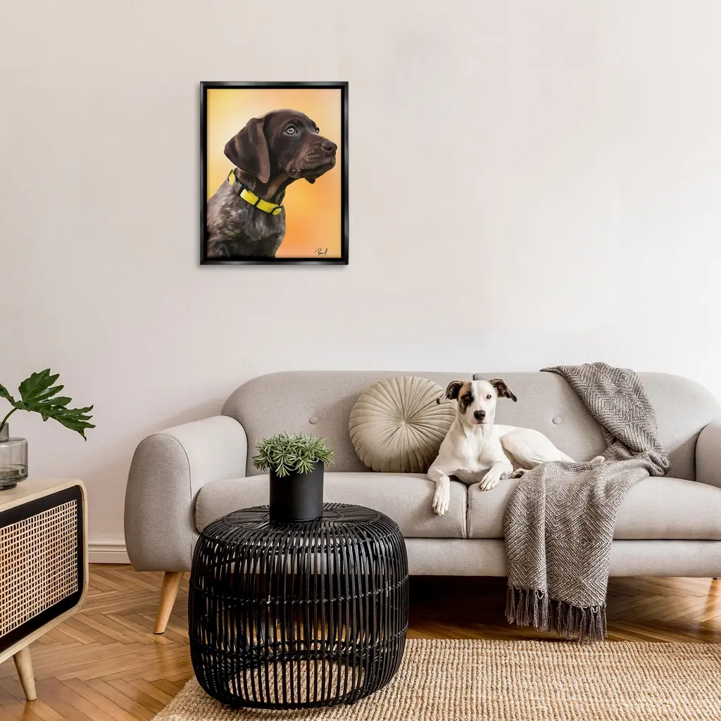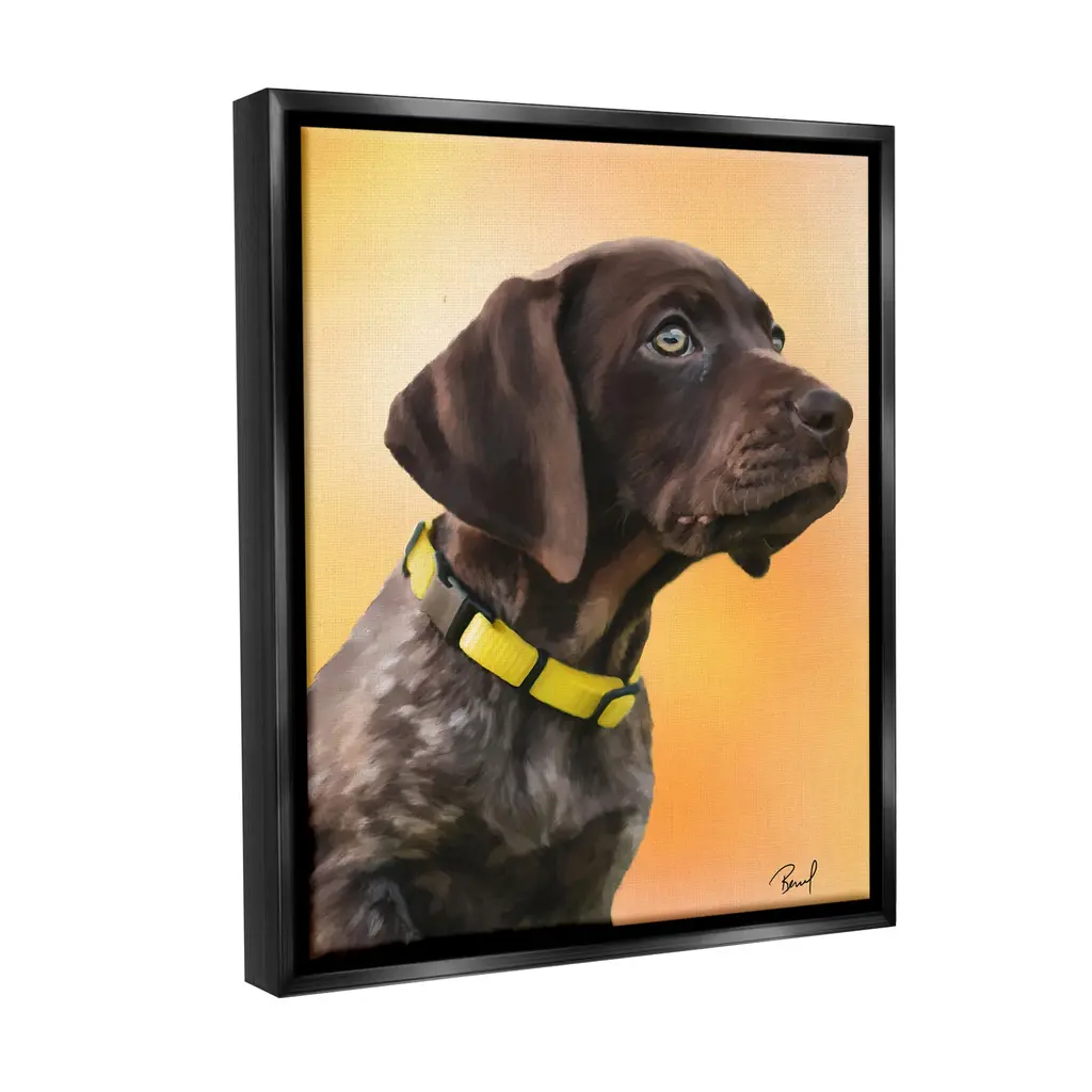 Elevate your home or office to the next level with Stupell Framed Floating Canvas Wall Art. Our premium hand-stretched canvas is mounted securely into a sturdy lightweight frame. The museum-style gap between the wrapped canvas and the box frame gives the illusion of floating artwork. Stupell Wall Art is made in the USA.Features: Dimensions: 17 x 1.7 x 21 Frame, 16 x 1.5 x 20 Canvas ArtFloating Frame Canvas Products are available in sizes 17"x21" and 25"x31". All Floating Frame Canvas Products have a 1.7" Depth.Wall Art is Ready to Hang with Hardware Free Hanging. No Installation required. For Easy Set Up Lean or Layer Artwork on Shelf or Against Wall. Artwork is Permently Fixed into the Frame.Our elevated 1.7" Thick Floating Frame is the perfect complement to our canvas style Wall Art. We use only the highest quality inks in house with industry leading printing solutions. Canvas is hand stretched over a durable wood foundation and then mounted securly into a Modern Box Frame. Made in the USA.Artwork Relates To: Animal, Canine, Dog, Mammal, Pet, Labrador Retriever, Hound, PuppyDesign by Renel Peters