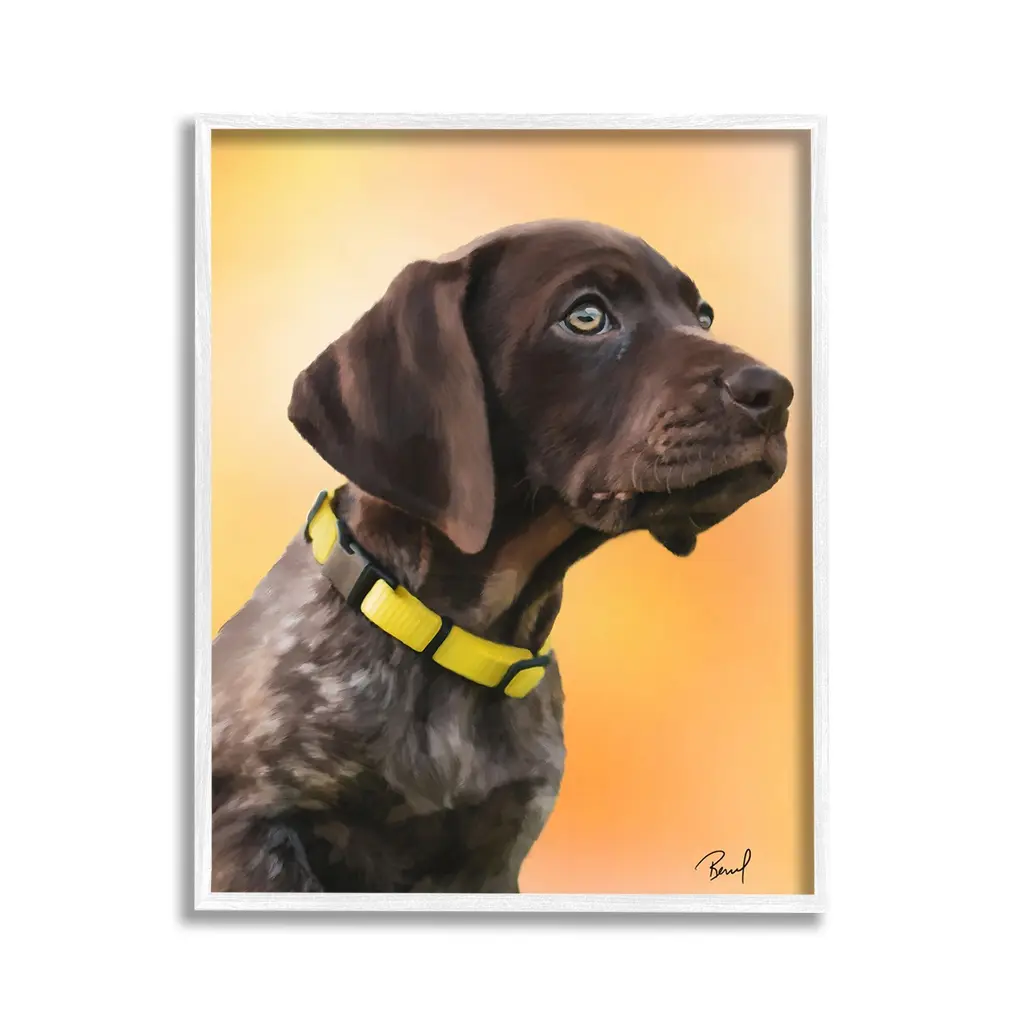 Add dimension to any room with our textured Framed Giclee Artwork. Our framed artwork is securely mounted into a 1.5-inch thick wood grain frame and ready to hang. Frames are available in three alluring styles: black, gray farmhouse and white. In addition, you should check out our oversized options if you want a statement piece. Stupell Wall Art is made in the USA.Features: Dimensions: 11 x 1.5 x 14 FramedFramed Giclee Products are available in the sizes 11"x14", 16"x20" or 24"x30". All Framed Giclee Products have a 1.5" Depth. Wall Art is Ready to Hang with Hardware Free Hanging. No installation required. For Easy Set Up Lean or Layer Artwork on Shelf or Against Wall.Our giclée prints are carefully mounted on a durable MDF backing, and then perfectly finished in a 1.5 inch thick woodgrain frame. Mounted frame colors include black, gray farmhouse and white. Made In USA.Artwork Relates To: Animal, Canine, Dog, Mammal, Pet, Labrador Retriever, Hound, PuppyDesign by Renel Peters