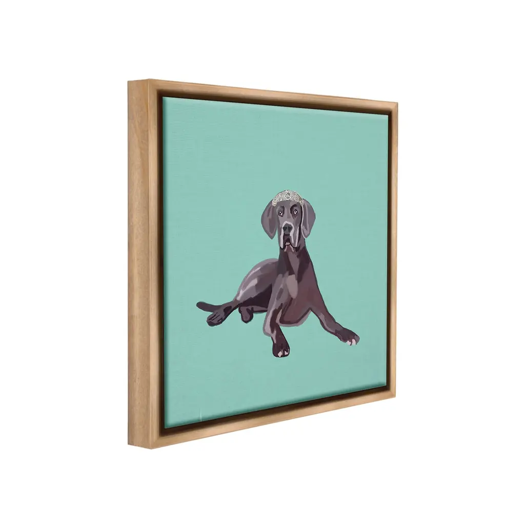 Elevate your home or office to the next level with Stupell Framed Floating Canvas Wall Art. Our premium hand-stretched canvas is mounted securely into a sturdy lightweight frame. The museum-style gap between the wrapped canvas and the box frame gives the illusion of floating artwork. Stupell Wall Art is made in the USA.Features: Dimensions: 18 x 1.7 x 18 Frame, 17 x 1.5 x 17 Canvas ArtFloating Frame Canvas Products are available in sizes 18"x18" and 25"x25". All Floating Frame Canvas Products have a 1.7" Depth.Wall Art is Ready to Hang with Hardware Free Hanging. No Installation required. For Easy Set Up Lean or Layer Artwork on Shelf or Against Wall. Artwork is Permently Fixed into the Frame.Our elevated 1.7" Thick Floating Frame is the perfect complement to our canvas style Wall Art. We use only the highest quality inks in house with industry leading printing solutions. Canvas is hand stretched over a durable wood foundation and then mounted securly into a Modern Box Frame. Made in the USA.Artwork Relates To: Animal, Canine, Dog, Mammal, Pet, Puppy, Tiara, Crown, Princess, LabradorDesign by Amelia Noyes