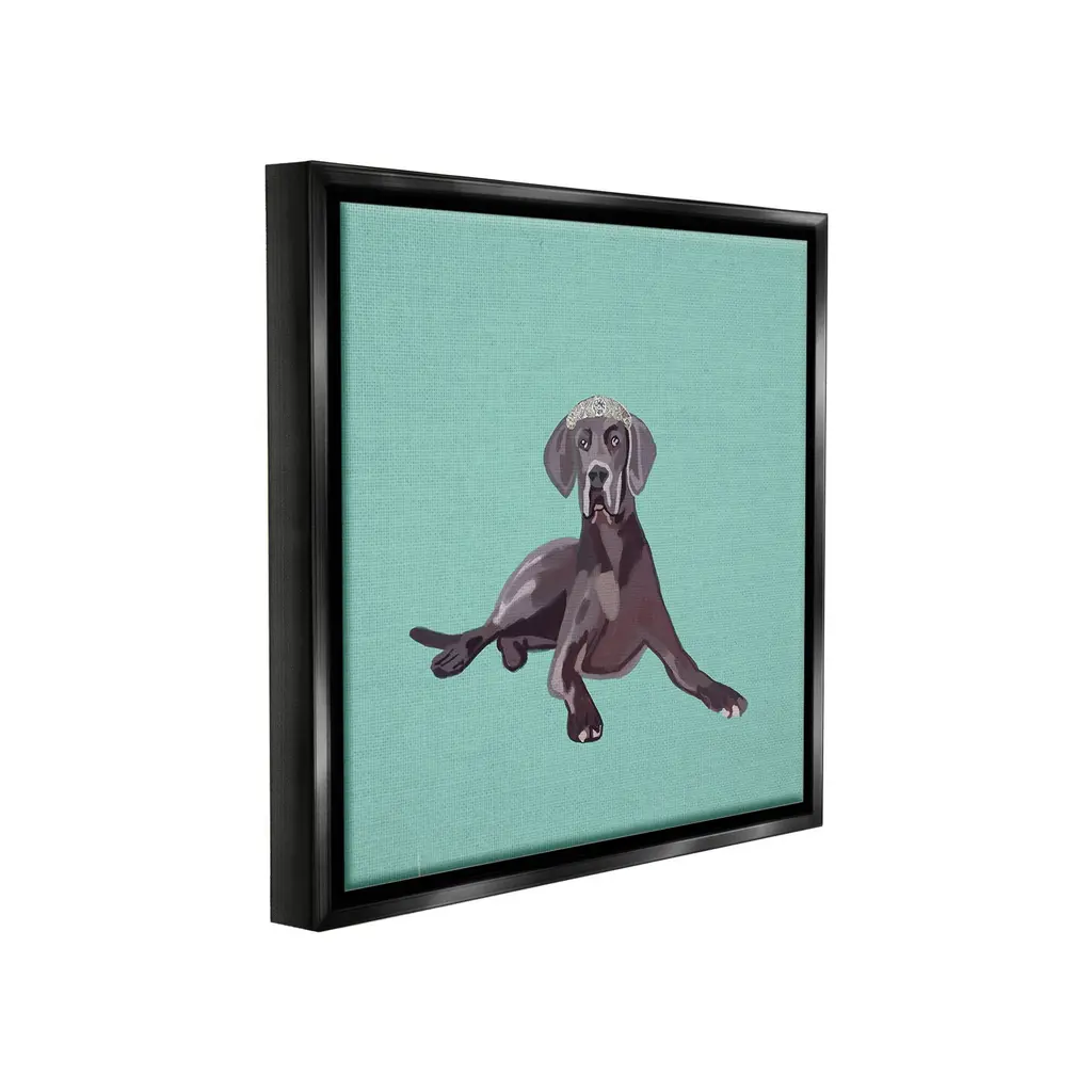 Elevate your home or office to the next level with Stupell Framed Floating Canvas Wall Art. Our premium hand-stretched canvas is mounted securely into a sturdy lightweight frame. The museum-style gap between the wrapped canvas and the box frame gives the illusion of floating artwork. Stupell Wall Art is made in the USA.Features: Dimensions: 18 x 1.7 x 18 Frame, 17 x 1.5 x 17 Canvas ArtFloating Frame Canvas Products are available in sizes 18"x18" and 25"x25". All Floating Frame Canvas Products have a 1.7" Depth.Wall Art is Ready to Hang with Hardware Free Hanging. No Installation required. For Easy Set Up Lean or Layer Artwork on Shelf or Against Wall. Artwork is Permently Fixed into the Frame.Our elevated 1.7" Thick Floating Frame is the perfect complement to our canvas style Wall Art. We use only the highest quality inks in house with industry leading printing solutions. Canvas is hand stretched over a durable wood foundation and then mounted securly into a Modern Box Frame. Made in the USA.Artwork Relates To: Animal, Canine, Dog, Mammal, Pet, Puppy, Tiara, Crown, Princess, LabradorDesign by Amelia Noyes
