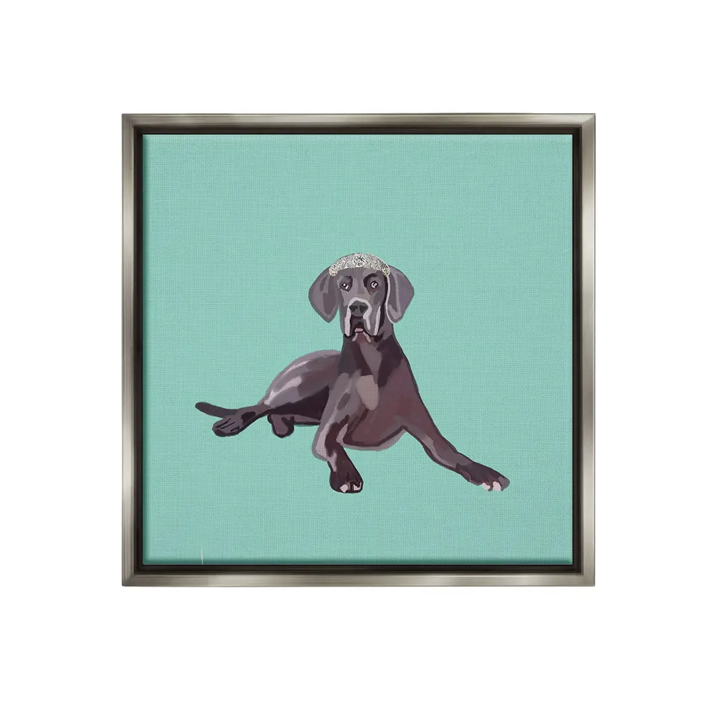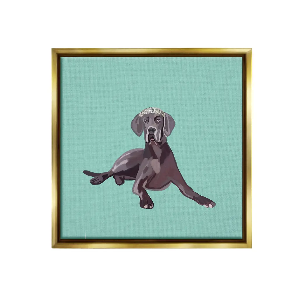 Elevate your home or office to the next level with Stupell Framed Floating Canvas Wall Art. Our premium hand-stretched canvas is mounted securely into a sturdy lightweight frame. The museum-style gap between the wrapped canvas and the box frame gives the illusion of floating artwork. Stupell Wall Art is made in the USA.Features: Dimensions: 18 x 1.7 x 18 Frame, 17 x 1.5 x 17 Canvas ArtFloating Frame Canvas Products are available in sizes 18"x18" and 25"x25". All Floating Frame Canvas Products have a 1.7" Depth.Wall Art is Ready to Hang with Hardware Free Hanging. No Installation required. For Easy Set Up Lean or Layer Artwork on Shelf or Against Wall. Artwork is Permently Fixed into the Frame.Our elevated 1.7" Thick Floating Frame is the perfect complement to our canvas style Wall Art. We use only the highest quality inks in house with industry leading printing solutions. Canvas is hand stretched over a durable wood foundation and then mounted securly into a Modern Box Frame. Made in the USA.Artwork Relates To: Animal, Canine, Dog, Mammal, Pet, Puppy, Tiara, Crown, Princess, LabradorDesign by Amelia Noyes