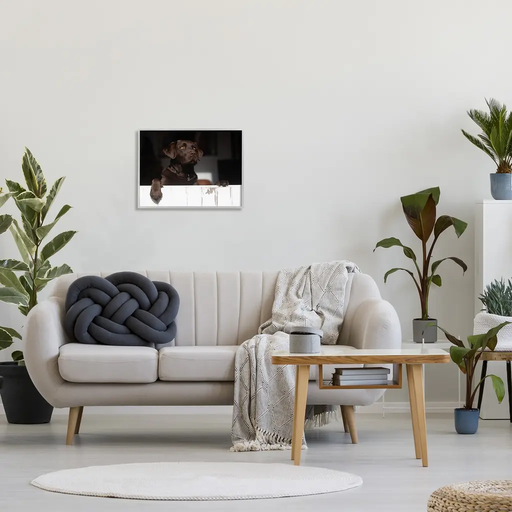 Our Framed Giclee Wall Art adds a touch of class to any space in your home or office. Frames are available in three alluring styles: black, gray farmhouse and white. Our textured artwork will add more depth and dimension to any space. Each piece is mounted with a 1.5 inch thick wood grain frame that is ready to hang! Looking for a statement piece? We have oversized artwork available.Features: Wall Art is Ready to Hang - No Installation or Hardware Needed. For Easy Set Up Lean or Layer Artwork on Shelf or Against Wall.Our giclee prints are carefully mounted on a durable MDF backing, and then perfectly finished in a 1.5 inch thick woodgrain frame. Mounted frame colors include black, gray farmhouse and white. Made In USA.Artwork Relates To: Labrador Retriever; Dog; Pet; Canine; Mammal; AnimalDesign by James Dobson
