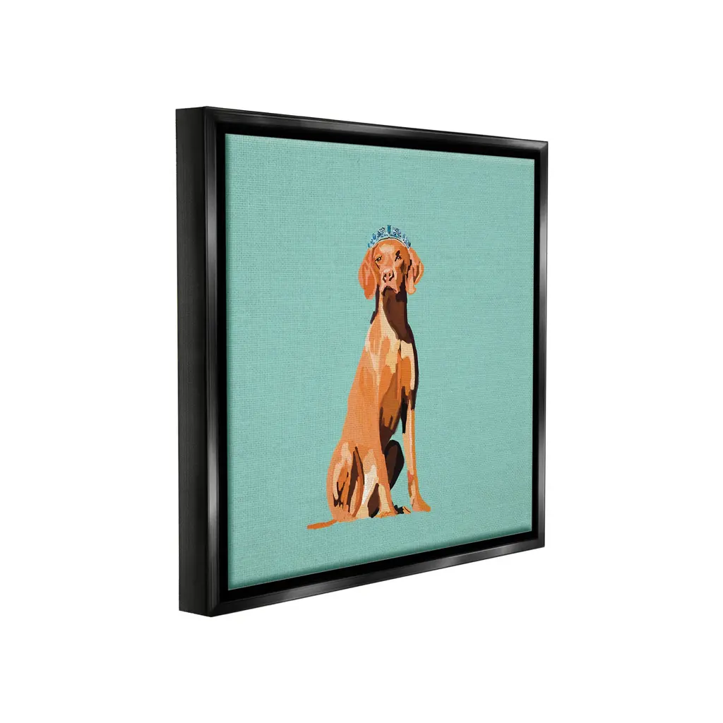 Elevate your home or office to the next level with Stupell Framed Floating Canvas Wall Art. Our premium hand-stretched canvas is mounted securely into a sturdy lightweight frame. The museum-style gap between the wrapped canvas and the box frame gives the illusion of floating artwork. Stupell Wall Art is made in the USA.Features: Dimensions: 18 x 1.7 x 18 Frame, 17 x 1.5 x 17 Canvas ArtFloating Frame Canvas Products are available in sizes 18"x18" and 25"x25". All Floating Frame Canvas Products have a 1.7" Depth.Wall Art is Ready to Hang with Hardware Free Hanging. No Installation required. For Easy Set Up Lean or Layer Artwork on Shelf or Against Wall. Artwork is Permently Fixed into the Frame.Our elevated 1.7" Thick Floating Frame is the perfect complement to our canvas style Wall Art. We use only the highest quality inks in house with industry leading printing solutions. Canvas is hand stretched over a durable wood foundation and then mounted securly into a Modern Box Frame. Made in the USA.Artwork Relates To: Animal, Canine, Dog, Mammal, Pet, Puppy, Tiara, Crown, Princess, LabradorDesign by Amelia Noyes