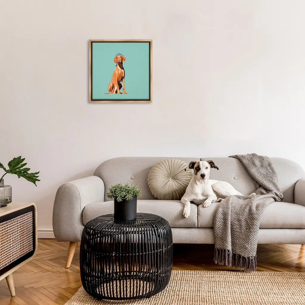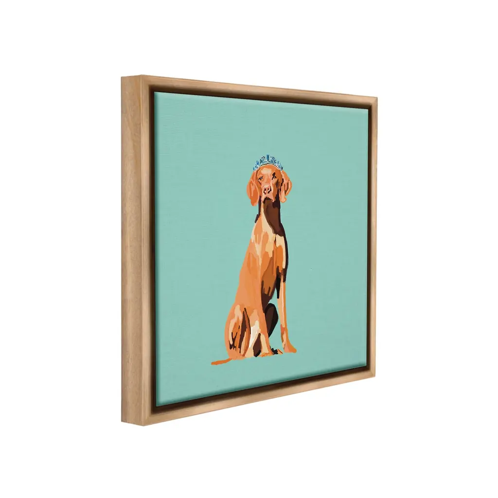Elevate your home or office to the next level with Stupell Framed Floating Canvas Wall Art. Our premium hand-stretched canvas is mounted securely into a sturdy lightweight frame. The museum-style gap between the wrapped canvas and the box frame gives the illusion of floating artwork. Stupell Wall Art is made in the USA.Features: Dimensions: 18 x 1.7 x 18 Frame, 17 x 1.5 x 17 Canvas ArtFloating Frame Canvas Products are available in sizes 18"x18" and 25"x25". All Floating Frame Canvas Products have a 1.7" Depth.Wall Art is Ready to Hang with Hardware Free Hanging. No Installation required. For Easy Set Up Lean or Layer Artwork on Shelf or Against Wall. Artwork is Permently Fixed into the Frame.Our elevated 1.7" Thick Floating Frame is the perfect complement to our canvas style Wall Art. We use only the highest quality inks in house with industry leading printing solutions. Canvas is hand stretched over a durable wood foundation and then mounted securly into a Modern Box Frame. Made in the USA.Artwork Relates To: Animal, Canine, Dog, Mammal, Pet, Puppy, Tiara, Crown, Princess, LabradorDesign by Amelia Noyes