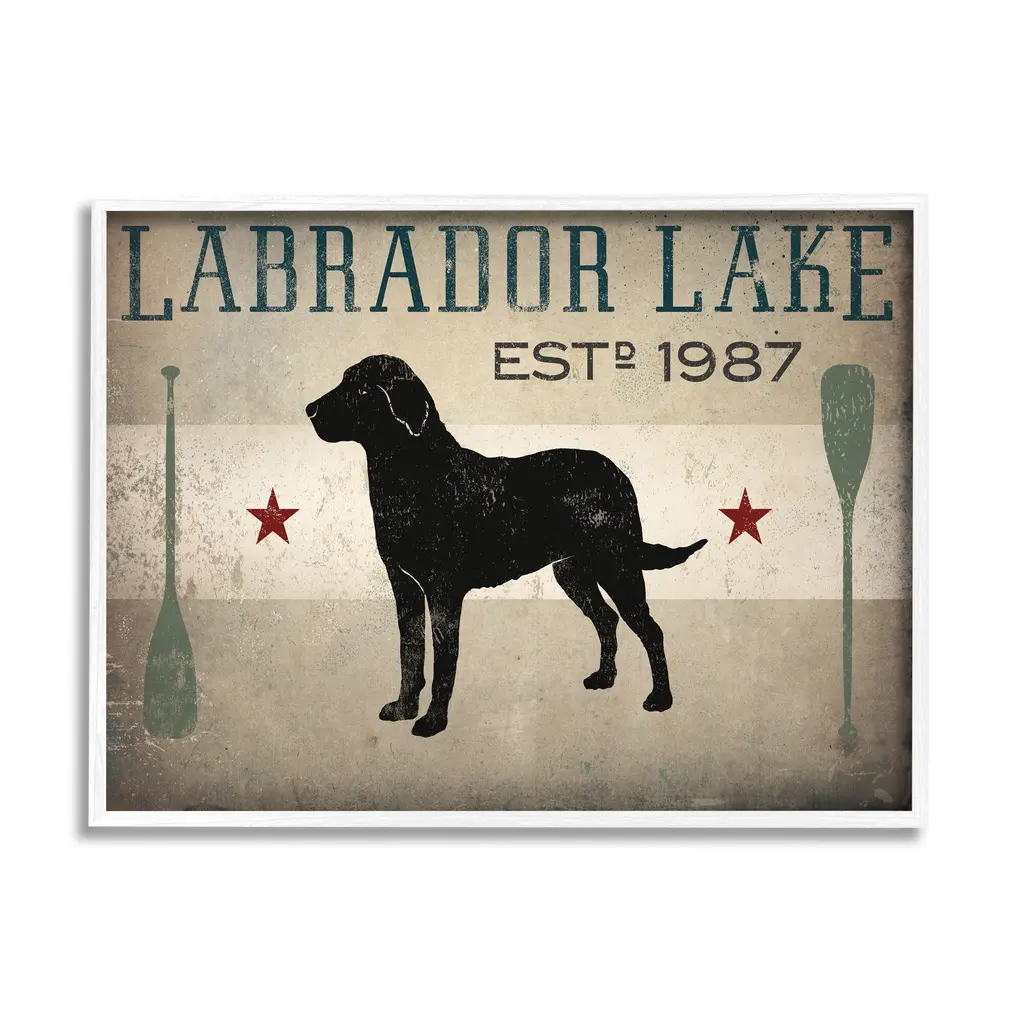 Stupell Labrador Lake Rustic Dog Rowboat Oars Cabin Sign Framed Wall Art - Black - 30 X 24 - Black