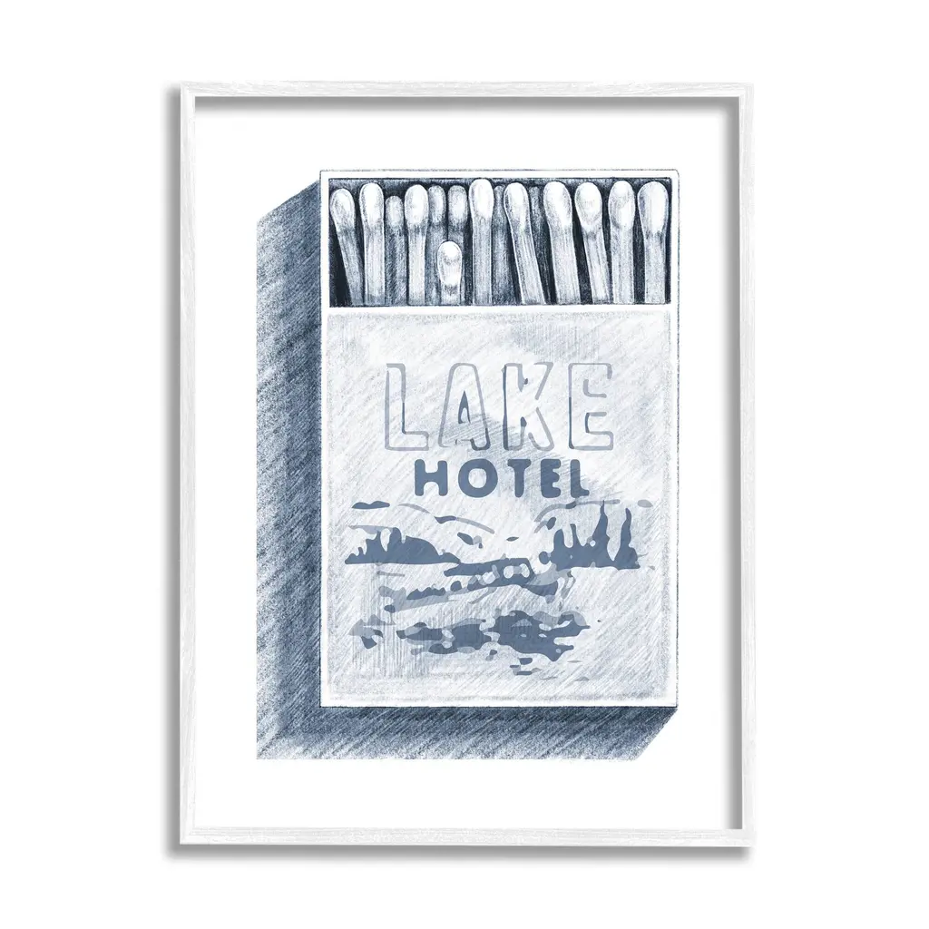 Add dimension to any room with our textured Framed Giclee Artwork. Our framed artwork is securely mounted into a 1.5-inch thick wood grain frame and ready to hang. Frames are available in three alluring styles: black, gray farmhouse and white. In addition, you should check out our oversized options if you want a statement piece. Stupell Wall Art is made in the USA.Features: Dimensions: 11 x 1.5 x 14 FramedFramed Giclee Sizes Include Standard: 11 x 1.5 x 14 Large: 16 x 1.5 x 20 Oversized: 24 x 1.5 x 30Wall Art is Ready to Hang - No Installation or Hardware Needed. For Easy Set Up Lean or Layer Artwork on Shelf or Against Wall.Our giclée prints are carefully mounted on a durable MDF backing, and then perfectly finished in a 1.5 inch thick woodgrain frame. Mounted frame colors include black, gray farmhouse and white. Made In USA.Artwork Relates To: Drawing, Matchbook, Lake HotelDesign by Lil' Rue