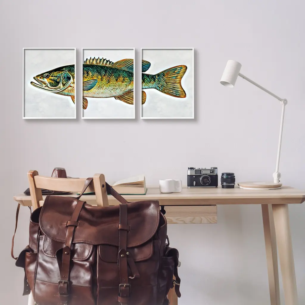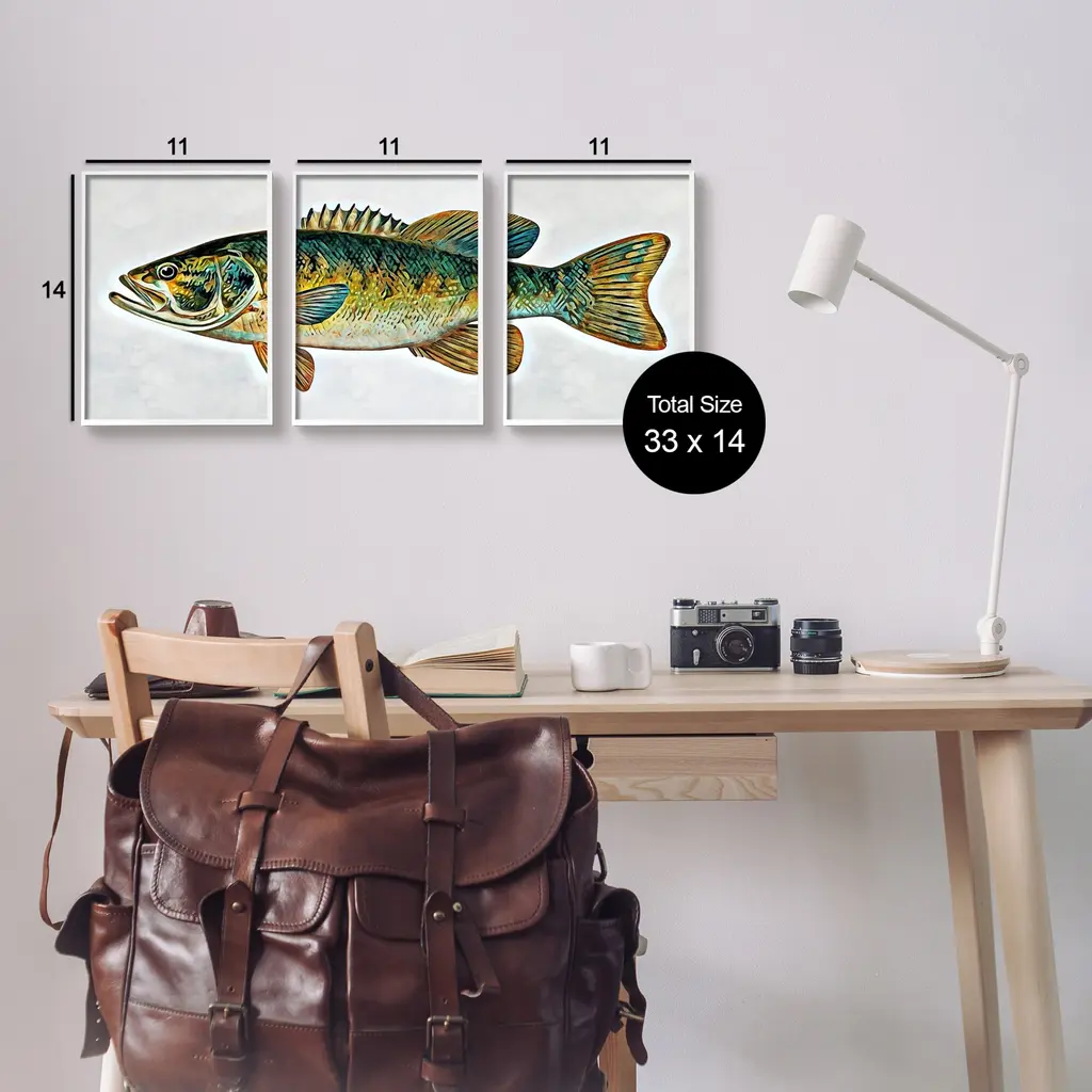 Fill any space in your home or office with our Framed Wall Art Sets. Our textured artwork will add more depth and dimension to any space. Each piece is mounted into a 1.5 inch thick ebony wood grain frame that is ready to hang. Looking for a statement piece? Our boxed framed products are now available in three alluring styles: black, gray farmhouse and white. We have oversized artwork available. Room Type: Living Room, Den, Hallway, Office, Entryway, Study, Dining Room or Bedroom, Guest Room, Studio, Dorm or BoudoirFeatures: Dimensions: 3 Piece Set, Each Panel is 11 x 1.5 x 14 FramedFramed Giclee Set Sizes Include Standard: 3pc, Each is 11 x 1.5 x 14 Large: 3pc, Each is 16 x 1.5 x 20 Oversized: 3pc, Each is 24 x 1.5 x 30Wall Art is Ready to Hang - No Installation or Hardware Needed. For Easy Set Up Lean or Layer Artwork on Shelf or Against Wall.Curated Wall Art Sets make it easy for you complete the theme for any room. Our giclée prints are carefully mounted on a durable MDF backing, and then perfectly finished in a 1.5 inch thick woodgrain frame. Mounted frame colors include black, gray farmhouse and white. Made In USA.Artwork Relates To: Animal, Fish, Sea Life, BassDesign by Ashley Aldridge