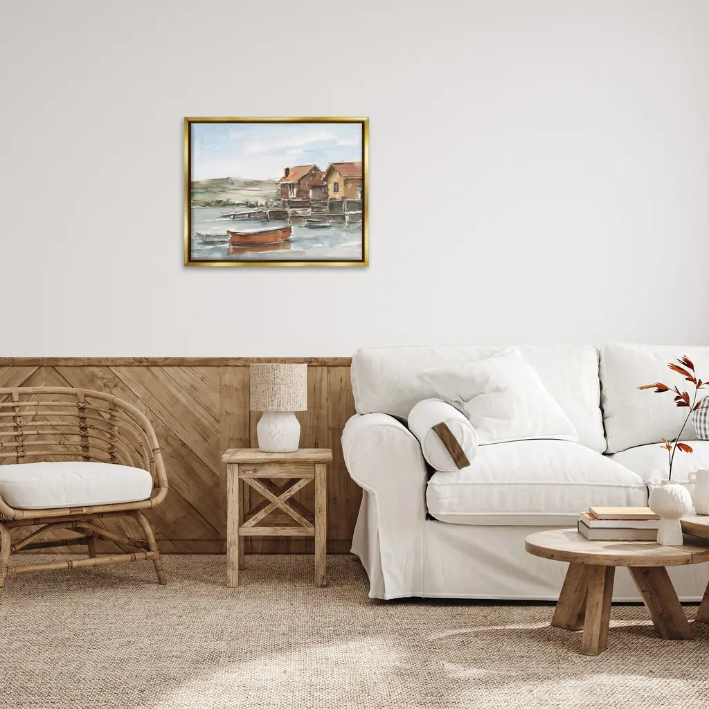 Elevate your home or office to the next level with Stupell Framed Floating Canvas Wall Art. Our premium hand-stretched canvas is mounted securely into a sturdy lightweight frame. The museum-style gap between the wrapped canvas and the box frame gives the illusion of floating artwork. Stupell Wall Art is made in the USA.Features: Dimensions: 21 x 1.7 x 17 Frame, 20 x 1.5 x 16 Canvas ArtFloating Frame Canvas Products are available in sizes 21"x17" and 31"x25". All Floating Frame Canvas Products have a 1.7" Depth.Wall Art is Ready to Hang with Hardware Free Hanging. No Installation required. For Easy Set Up Lean or Layer Artwork on Shelf or Against Wall. Artwork is Permently Fixed into the Frame.Our elevated 1.7" Thick Floating Frame is the perfect complement to our canvas style Wall Art. We use only the highest quality inks in house with industry leading printing solutions. Canvas is hand stretched over a durable wood foundation and then mounted securly into a Modern Box Frame. Made in the USA.Artwork Relates To: Boat, Shack, Water, Waterfront, Dinghy, Watercraft, Lake, Pond, Beach, CoastalDesign by Ethan Harper