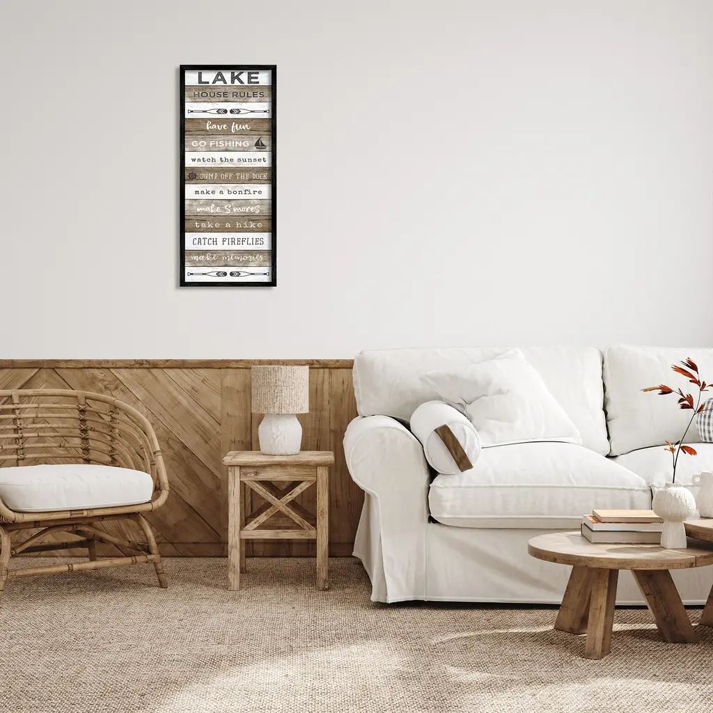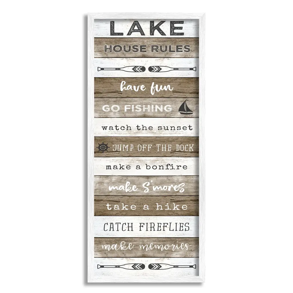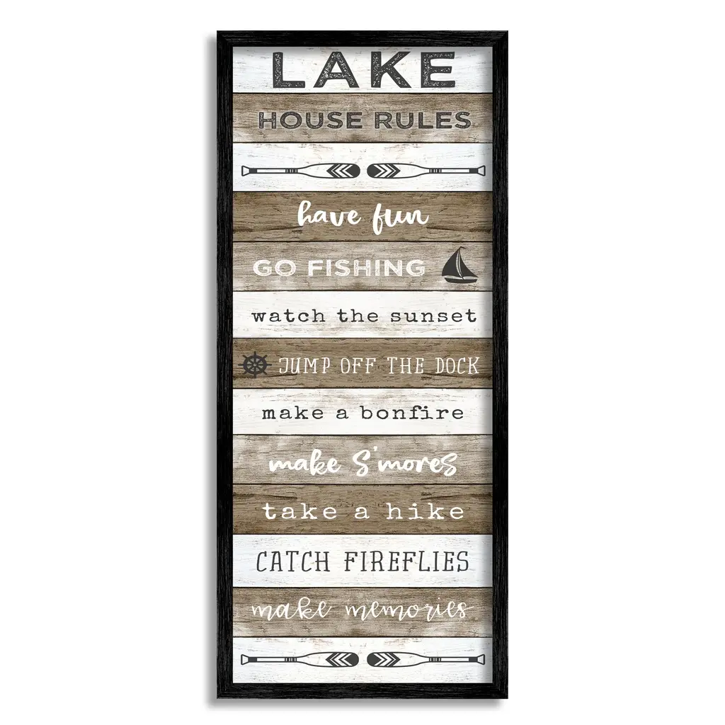 Stupell Lake House Rules List Rustic Pattern Boat Oars Framed Wall Art - White - 10 X 24 - Black